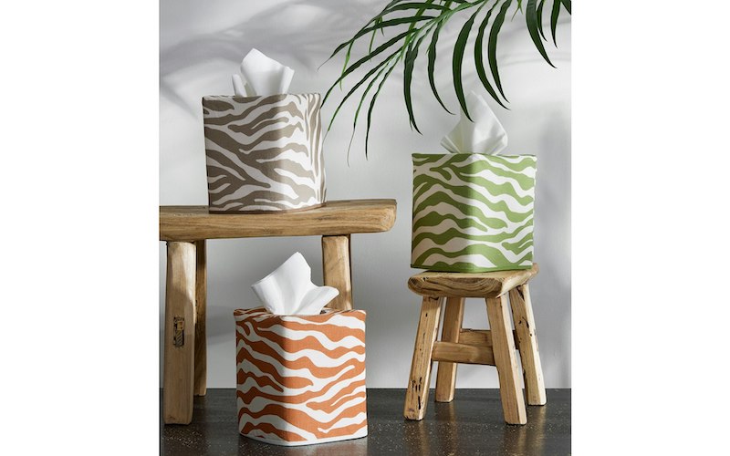 Matouk's Schumacher Regine Tissue Box Cover transforms one of Schumacher’s most vibrant patterns into a decorative jacquard weave. Rendered in a refined linen-cotton blend with a notably soft hand, it offers exceptional quality and a stylized zebra motif that's beautiful enough to display yet perfectly suited for daily use. Cut from larger fabric; pattern may not be exactly as shown. 100% linen woven and printed in Portugal. Made in the Philippines of fabric from Portugal.