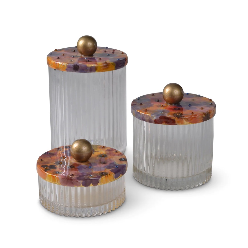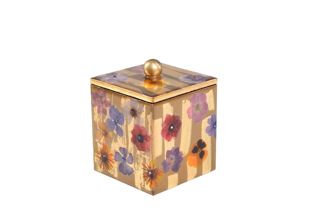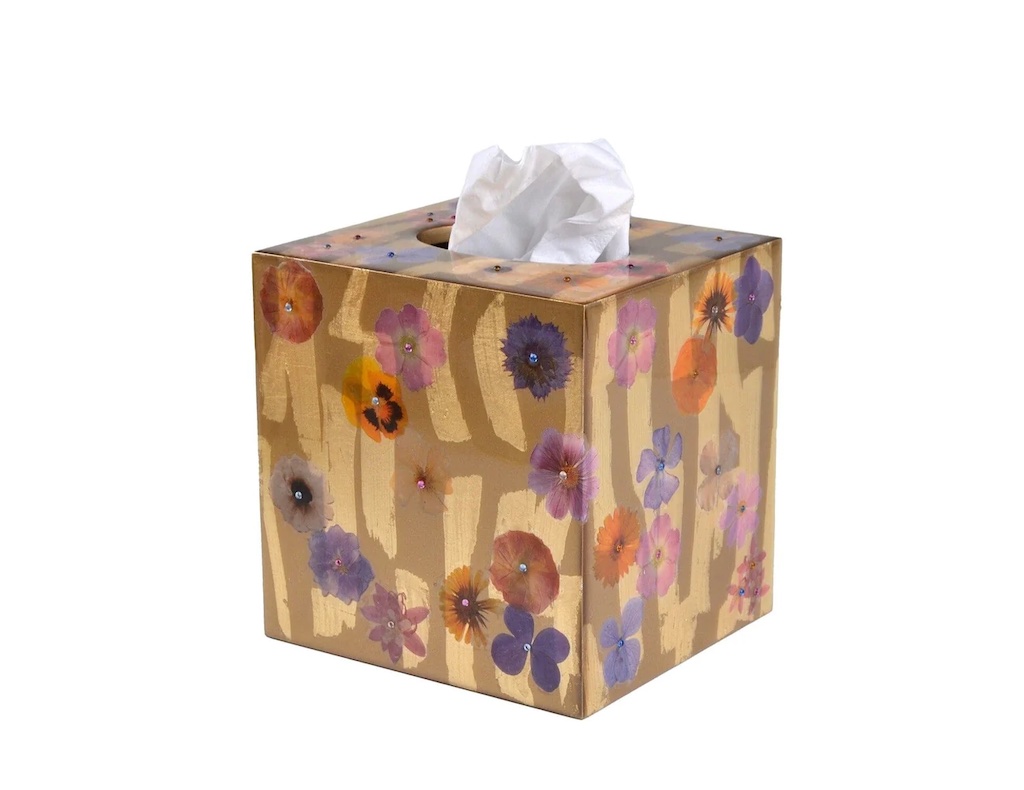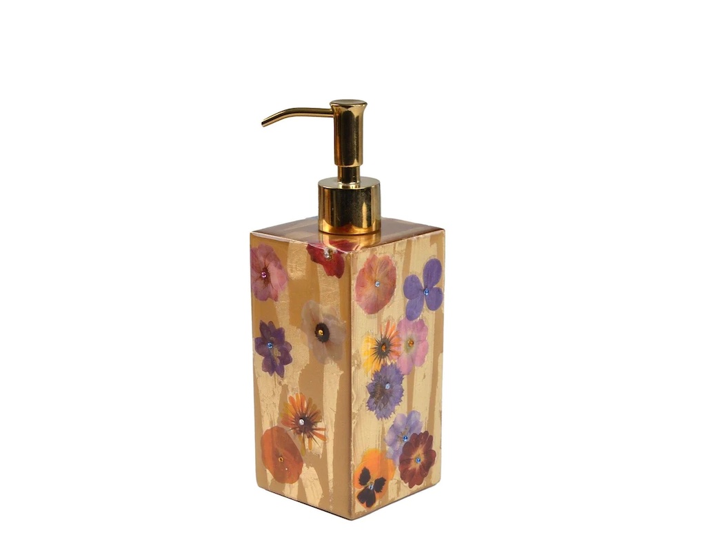 Mike + Ally's Fleur Luxury Bath Accessories are elegant and colorful. Each piece has wildflowers with cabochon stones. Each piece is custom-made to order. Mike + Ally products are handcrafted by artisans. Small irregularities in shape, surfaces and finishes are hallmarks of such craftsmanship and are not defects. Custom made in M+A NYC studio. Please allow 4-5 weeks.