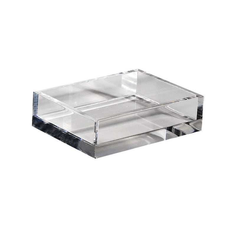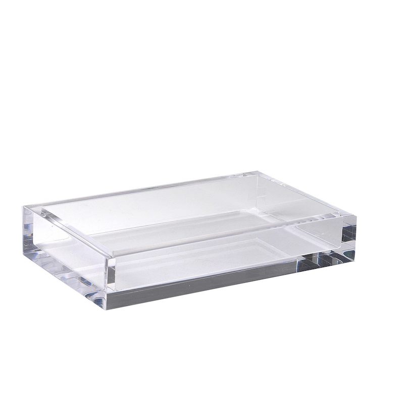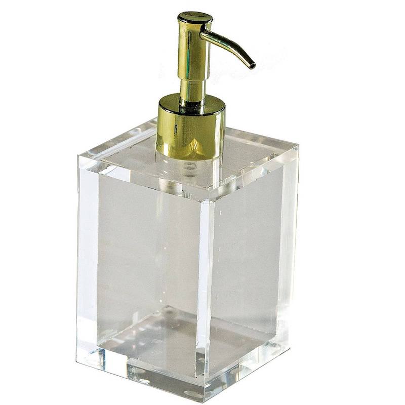 Mike + Ally's Ice Luxury Bath Accessories has been mastered by M+A. They only use high quality 3/8" thick clear Lucite. It is then hand cut, assembled, polished and glued to a seamless finish. This collection coordinates with an array of bathroom décors. Choose between gold or silver pump and gold or silver boutique box liner.