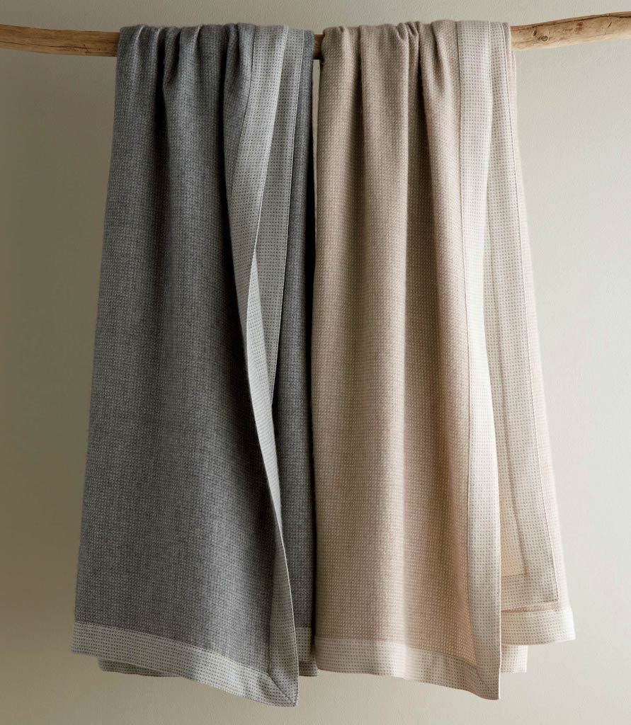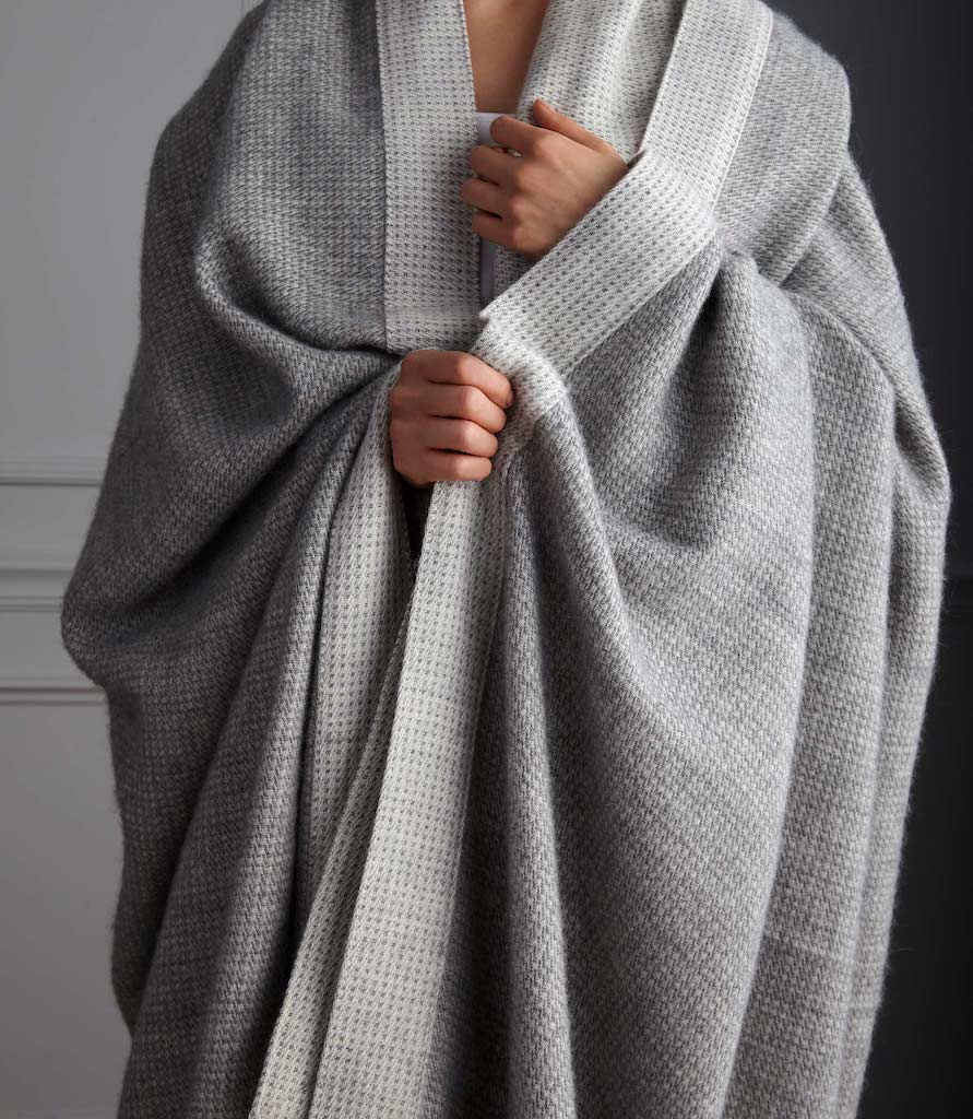 Peacock Alley's Angelo reversible blanket is the epitome of comfort and luxury. Angelo's blend of baby alpaca and fine cotton yarns delivers an enduringly soft but light feel. Two complementary tones of yarn are woven to form a versatile, reversible blanket that can be styled to fit any classic, traditional, or modern home. Reversible with a 2.5" mitered border on all four sides. 52% Alpaca / 48% Cotton. Imported from Lithuania, Designed in Italy.