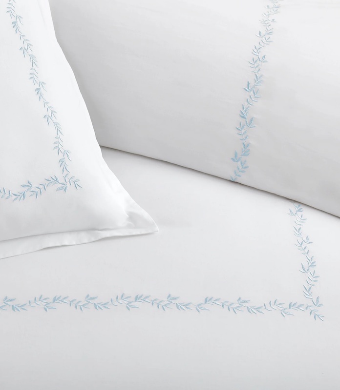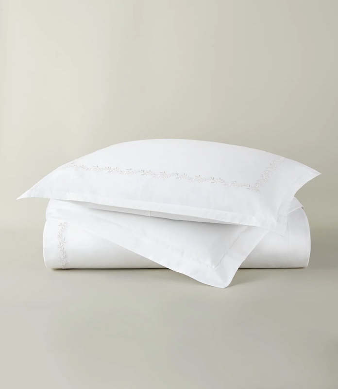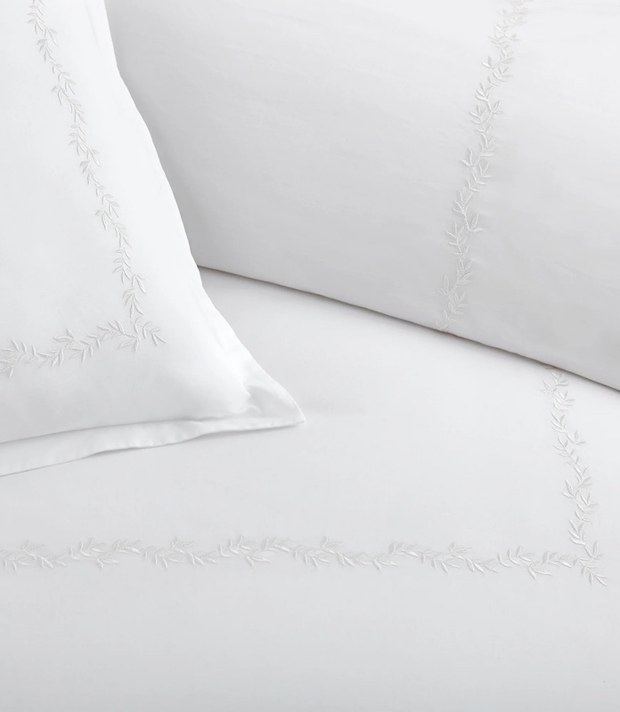 Inspired by the refined aesthetics of luxury hospitality, Peacock Alley's Ivy Classic Embroidered Duvet Set in Linen brings enduring sophistication to your bedroom. The collection features an elegant embroidered border showcasing delicate vining leaves in the signature Ivy pattern, introducing organic charm and understated refinement. Crafted from 100% cotton percale, this set delivers both durability and comfort while its versatile design complements diverse décor styles. Expertly produced in Portugal, it represents the quality craftsmanship Peacock Alley is known for.