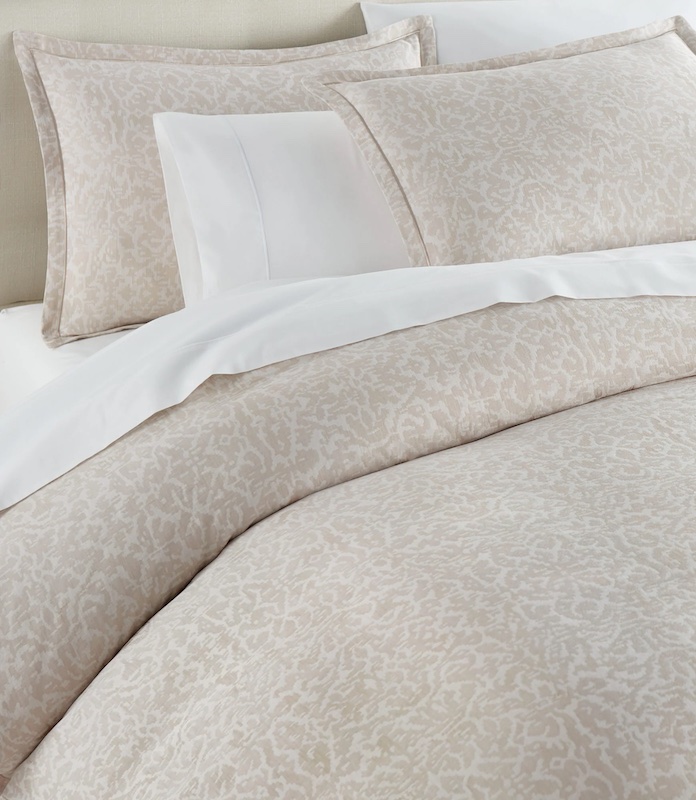 Peacock Alley's Ravenna is gender neutral and can be mixed with an array of styles. It is a masterfully woven jacquard with a modernized, deconstructed Damask design. Available in multiple soothing tones that translate well with taupe and gray for a transitional look. The duvets and shams feature a 1” flange with a coordinating satin stitch. The duvet cover is finished with a knife edge on the top side and a zipper closure at the bottom 1" from the hem on the back side. The shams are finished with an envelope closure centered on the back. 100% Long staple cotton. Handcrafted in the north of Italy.