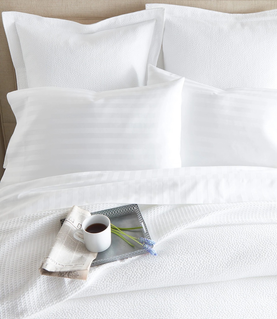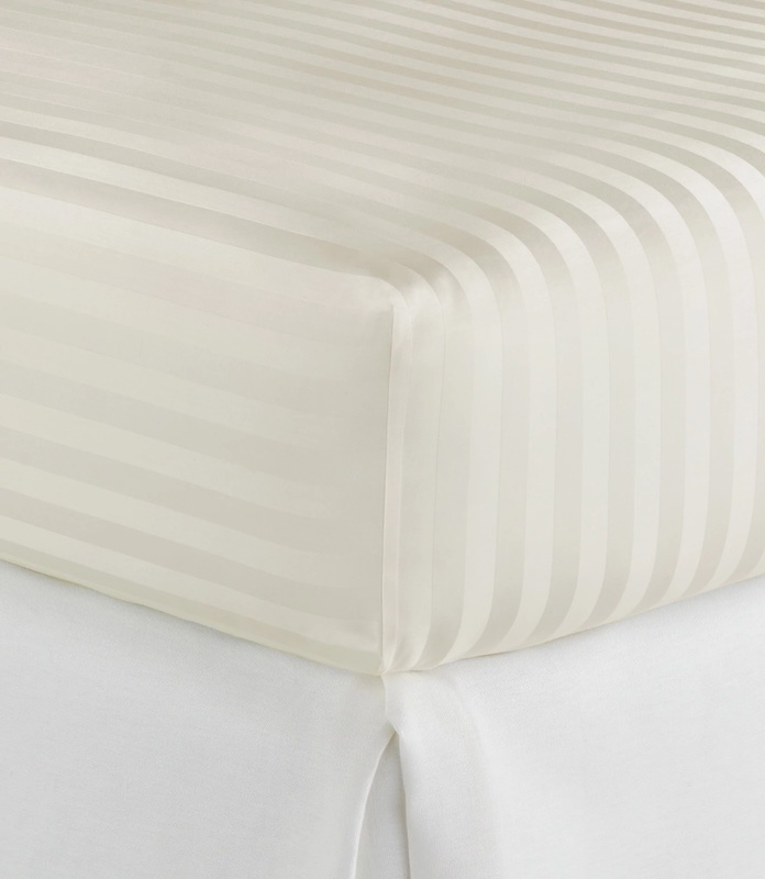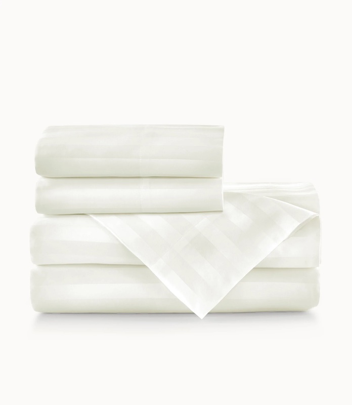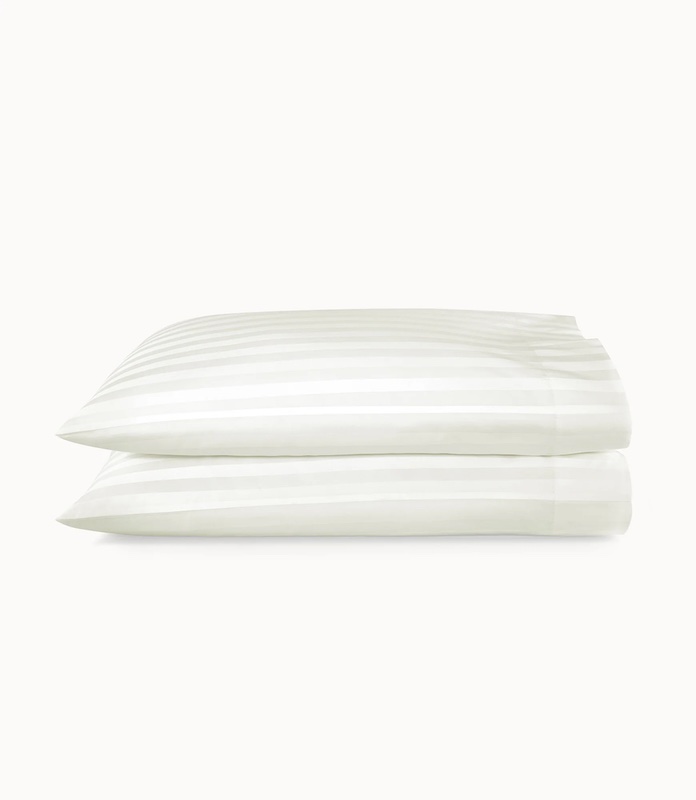Peacock Alley's Soprano Stripe Ivory came from their best-selling Soprano 100% cotton sateen bedding collection. Soprano Stripe is an instant favorite. The tone on tone stripe provide an essence of timeless sophistication. Slip into the soft, sumptuous comfort of Soprano Stripe and prepare to fall in love. Available in duvets, shams, flat sheets, fitted sheets, pillowcases and as a sheet set. Available in Ivory and White. 100% Extra-long staple cotton. 400 Thread count sateen sheeting.