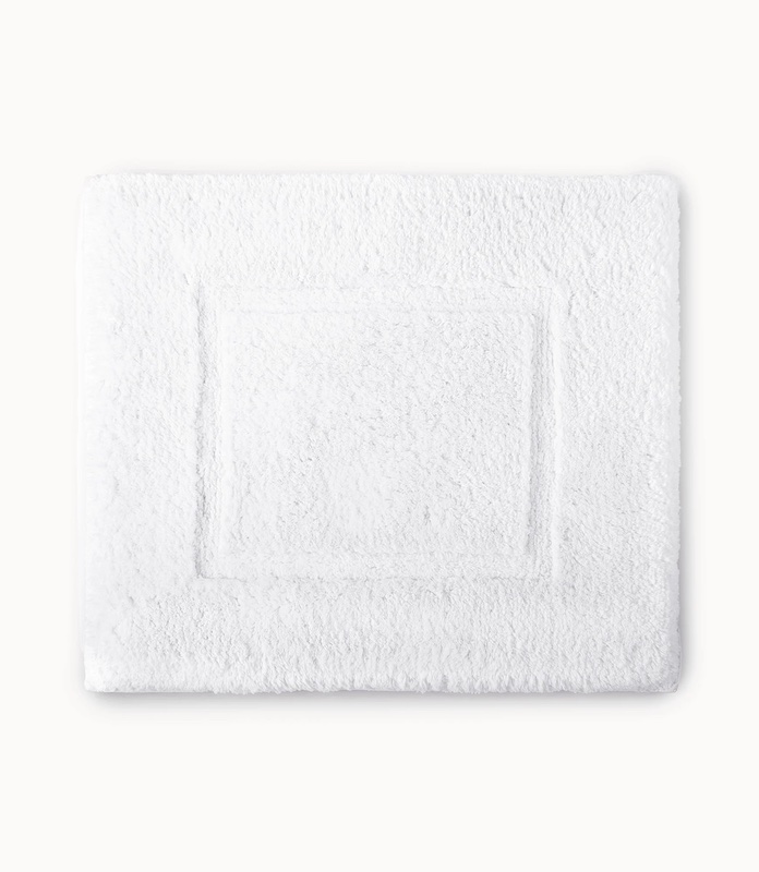 Tiffany Cloud Bath Rug in White is from the popular Tiffany bath rug but with an added a removable, high density foam insert that repels water and is naturally antimicrobial. This rug boasts a durable loop construction, which makes it light, saves energy when washing and drying, and maintains its loft and softness. It may be the most comfortable bath rug ever. 100% Long staple cotton. Imported from Portugal