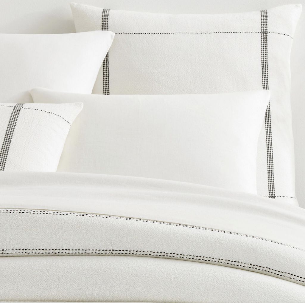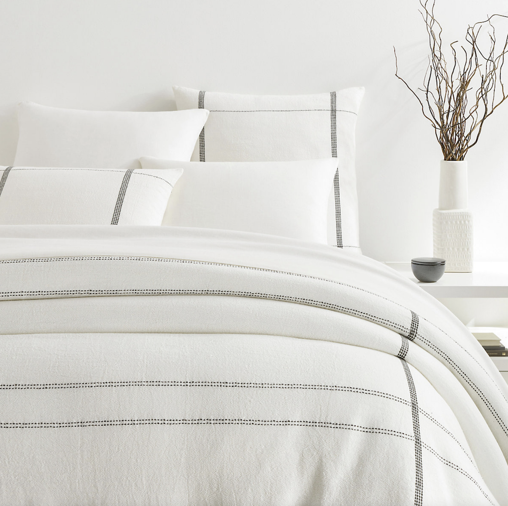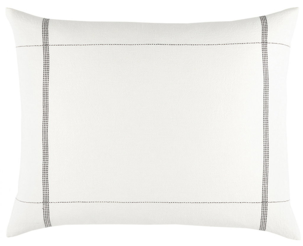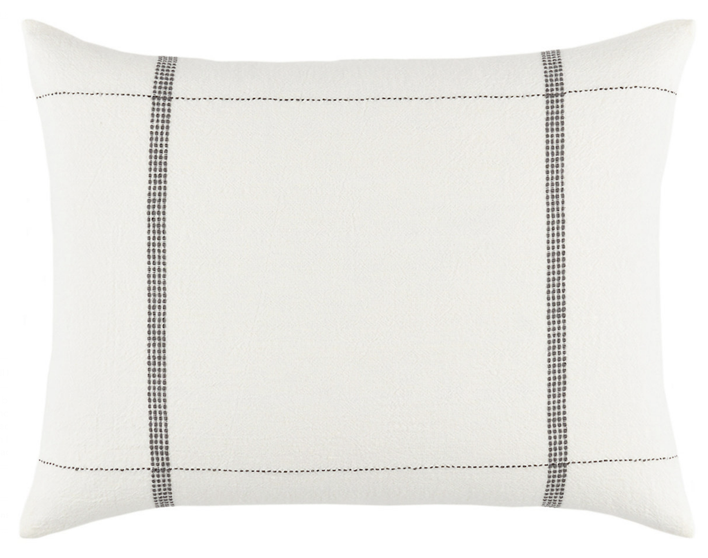 Pine Cone Hill's Atherton Grey was inspired by antique, homespun grain sacks, the Atherton Duvet Cover boasts a large windowpane check that will add a modern farmhouse aesthetic to any decor. Subtly engineered to resemble hand stitching, the heirloom flaxen quality softens with every wash, with very little wrinkling, and is made to last a lifetime. Duvet has hidden button closure. Inside corner ties to help keep duvet insert secure. Shams have closure ties.