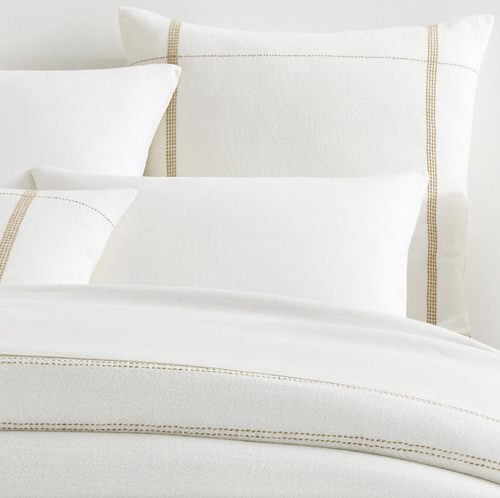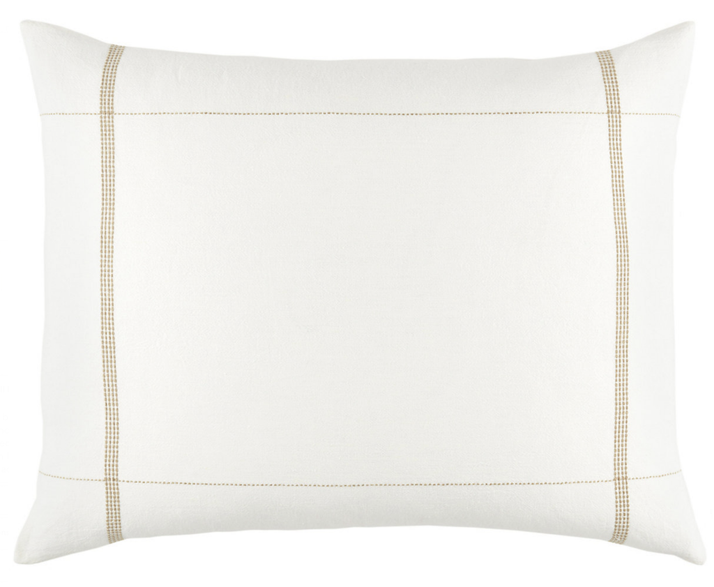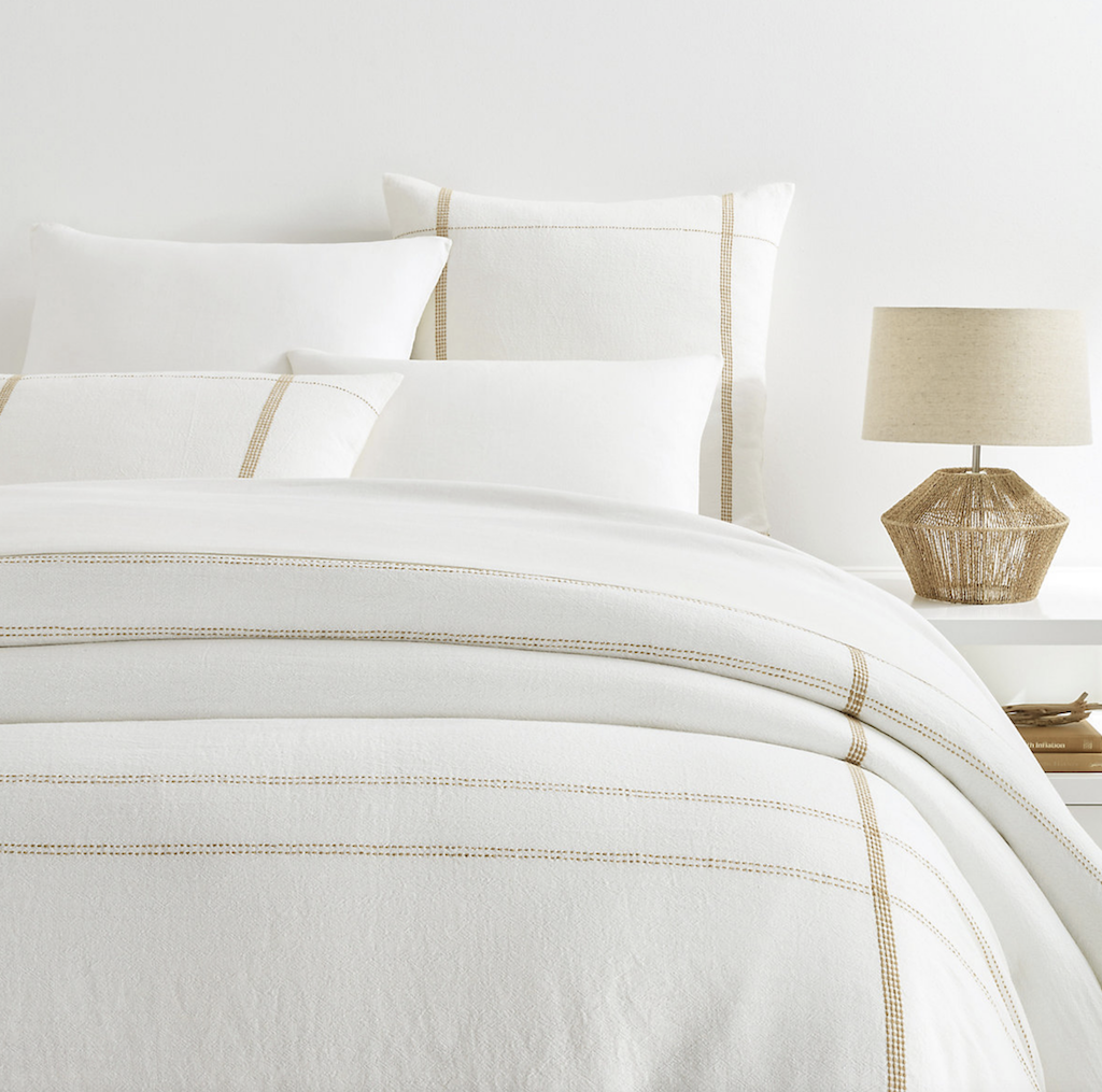 Pine Cone Hill's Atherton Natural was inspired by antique, homespun grain sacks, the Atherton Duvet Cover boasts a large windowpane check that will add a modern farmhouse aesthetic to any decor. Subtly engineered to resemble hand stitching, the heirloom flaxen quality softens with every wash, with very little wrinkling, and is made to last a lifetime. Duvet has hidden button closure. Inside corner ties to help keep duvet insert secure. Shams have closure ties.