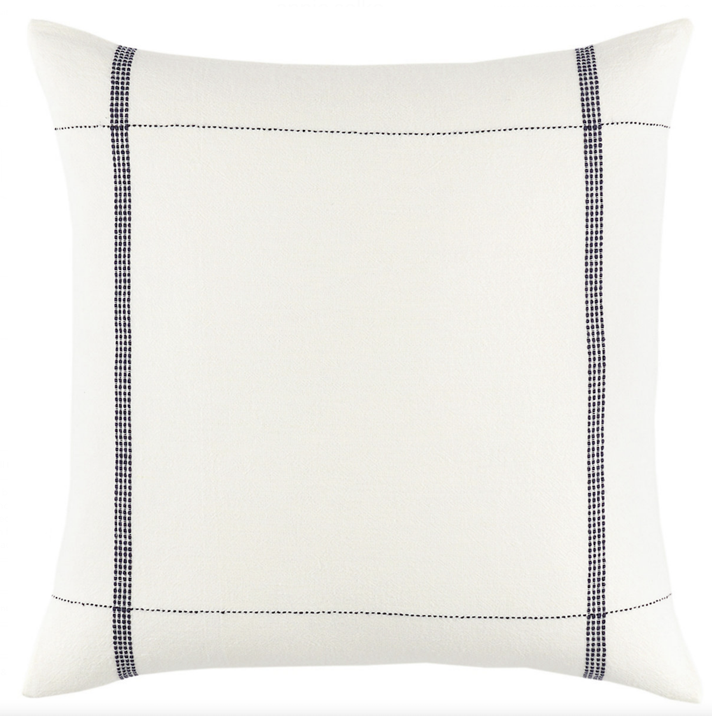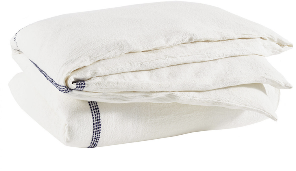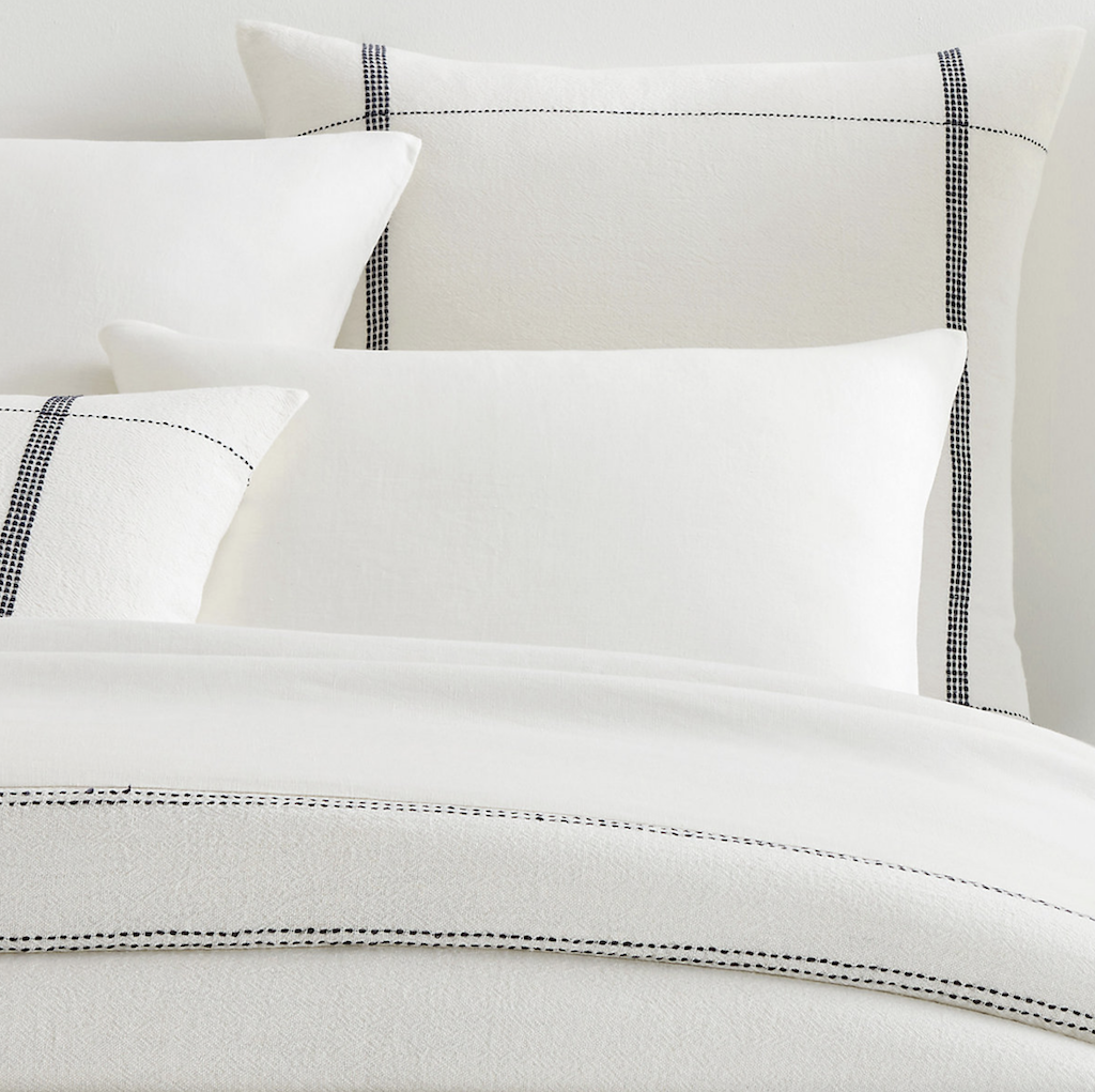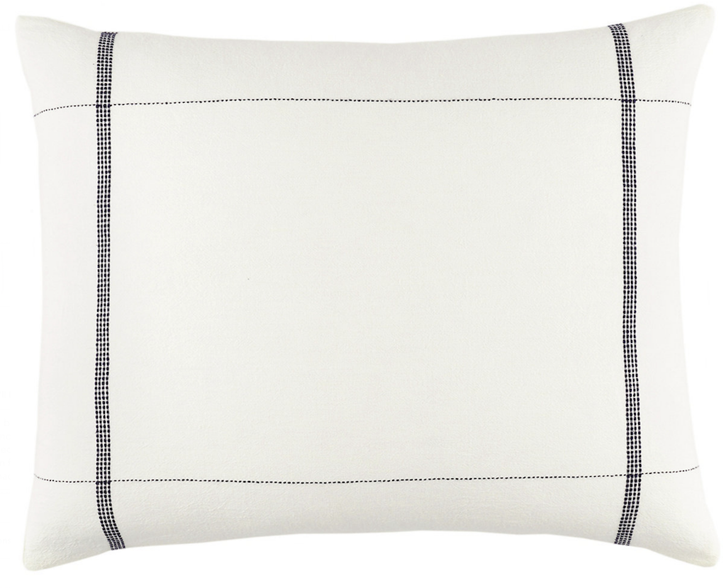 Pine Cone Hill's Atherton Navy was inspired by antique, homespun grain sacks, the Atherton Duvet Cover boasts a large windowpane check that will add a modern farmhouse aesthetic to any decor. Subtly engineered to resemble hand stitching, the heirloom flaxen quality softens with every wash, with very little wrinkling, and is made to last a lifetime. Duvet has hidden button closure. Inside corner ties to help keep duvet insert secure. Shams have closure ties.