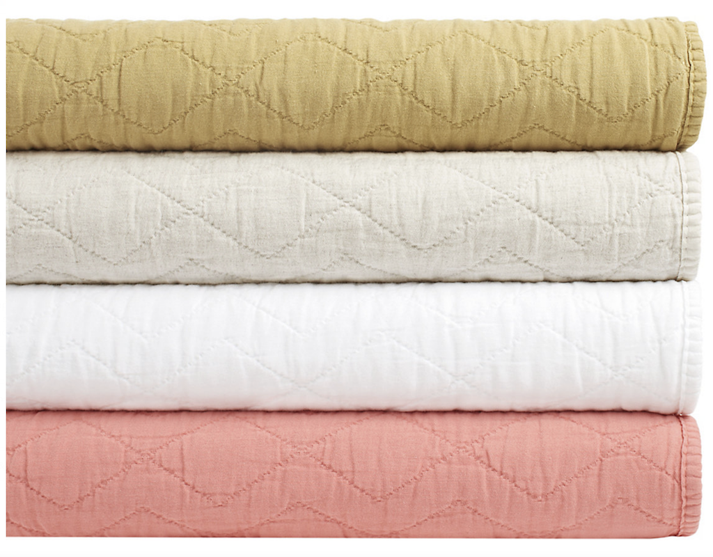 Pine Cone Hill's Birdie Natural is is supremely soft and woven with a lived-in texture. A stitched geometric diamond detail lends visual interest and loft. Closure ties on the shams except Dutch Euro. It has a zipper closure. Twin/Twin XL quilts have a longer fit to accommodate both standard twin and twin XL dorm mattresses.