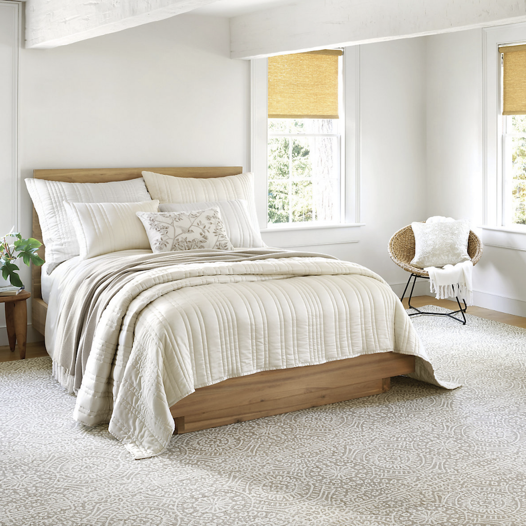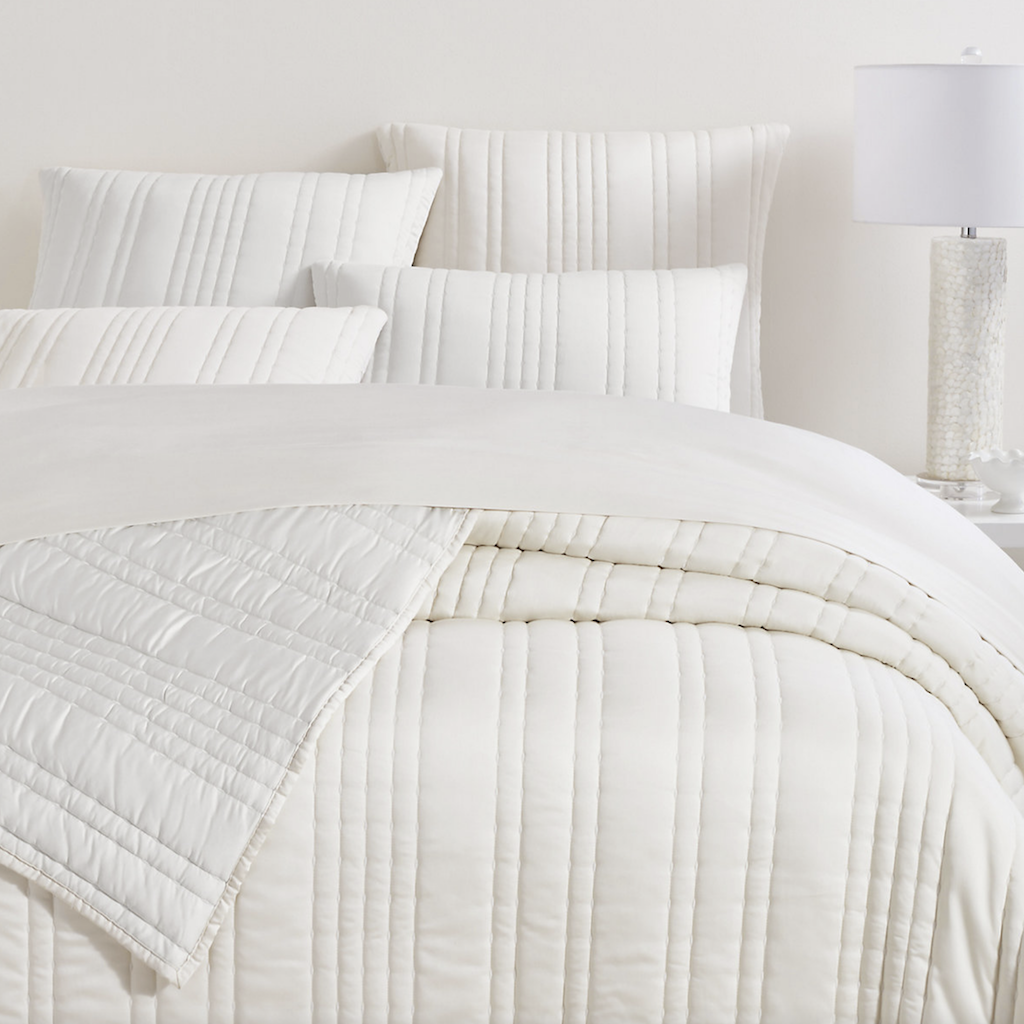 Pine Cone Hill's Blissful Bamboo Pearl/Silver Quilts and Shams are silky, soft, and naturally hypoallergenic, and they get softer with every wash. Fully reversible, one side is pearl ivory and the other is a soft silver grey. An eco-friendly choice, bamboo is a renewable and biodegradable resource, grown without chemicals and with minimal water use. 100% viscose from bamboo.