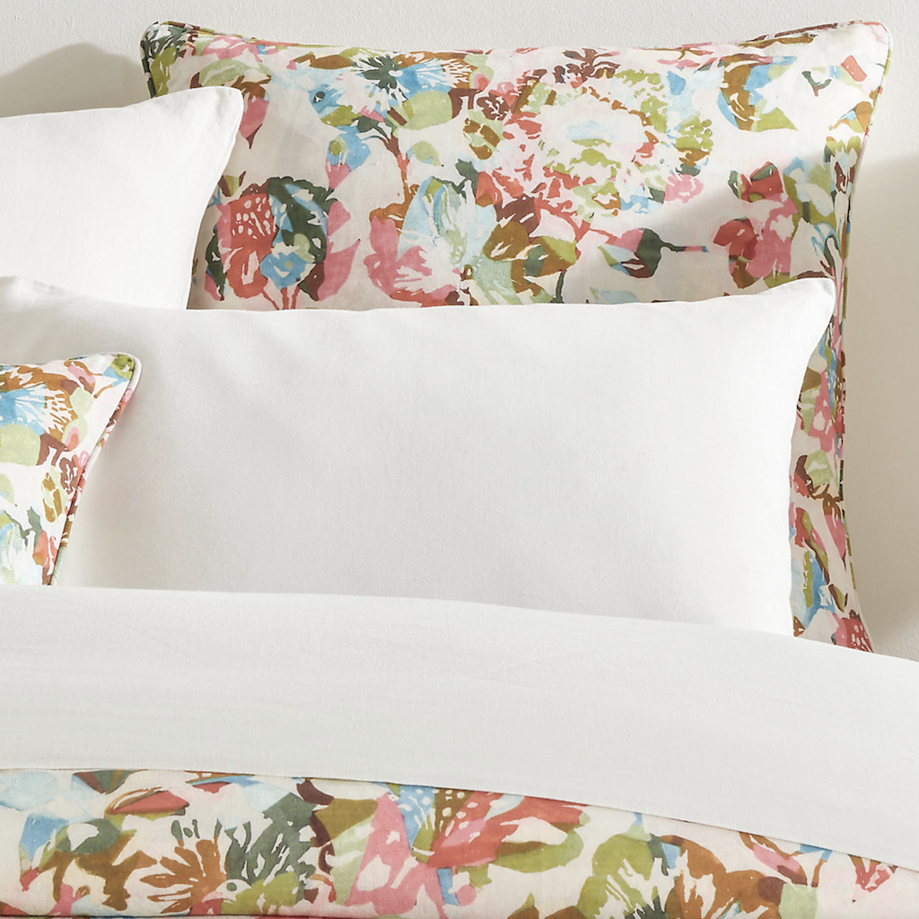 Pine Cone Hill's Bloom Linen Multi will add effortless style to your bed with this bold, abstract floral sham inspired by an antique painting our designers discovered. Lightweight and colorful, it's skillfully woven in a breathable cotton and linen blend that gets softer with every wash. Twin/Twin XL duvet covers have a longer fit to accommodate both standard twin and twin XL dorm mattresses. Hidden button closure. Inside corner ties to help keep duvet insert secure.
