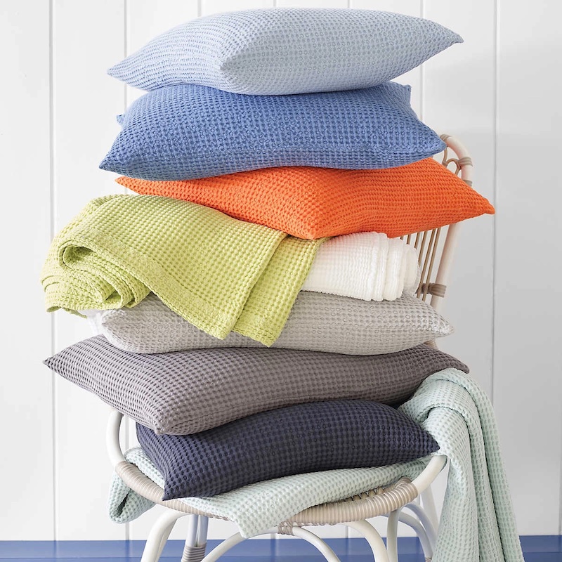 updated cotton matelassé waffle weave for a frothy, soft look, texture