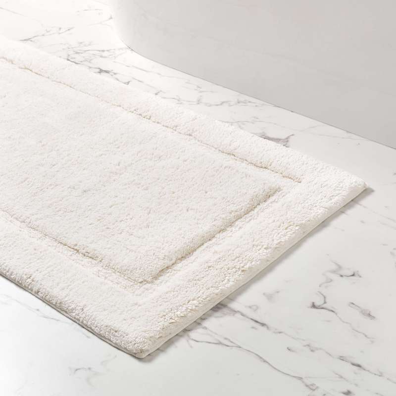 Pine Cone Hill's Signature Bath Rug is classic, plush, absorbent and luxurious.  It is offered in a range of fresh and happy colors. Cloud-like softness as you step out of the shower comes from a dense, soft and substantial long-staple cotton. This bath rug has a superbly high pile offset by a woven decorative border. 100% Cotton