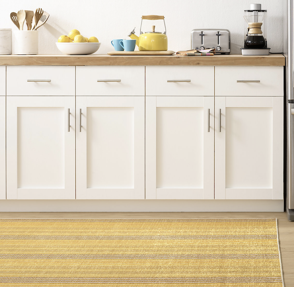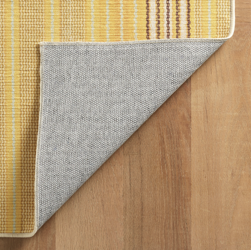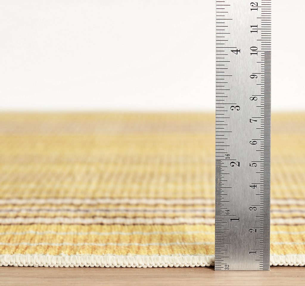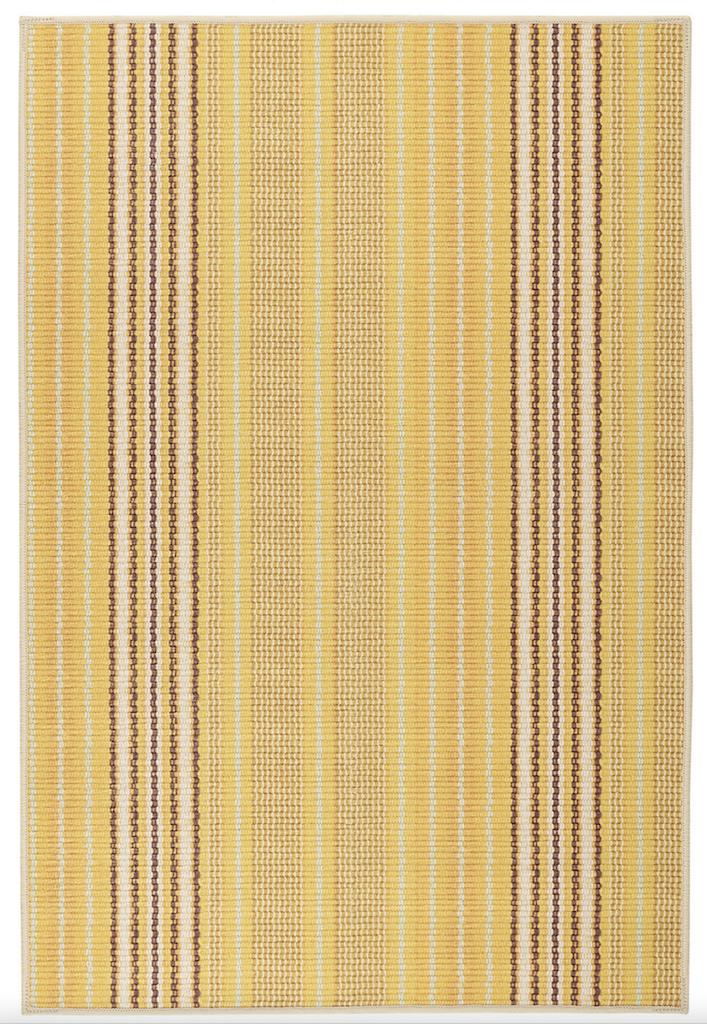 Dash & Albert's Sunflower Ticking Yellow Machine Washable Rug was inspired by the colors of the Mediterranean. It features a mix of sunny yellow stripes equally at home in modern, farmhouse, coastal, or traditional rooms, wherever you need a stylish, easy-to-clean, durable rug option. Its superior quality means it lies flat and remains soft underfoot with no shedding or fuzzing, even after multiple washes.