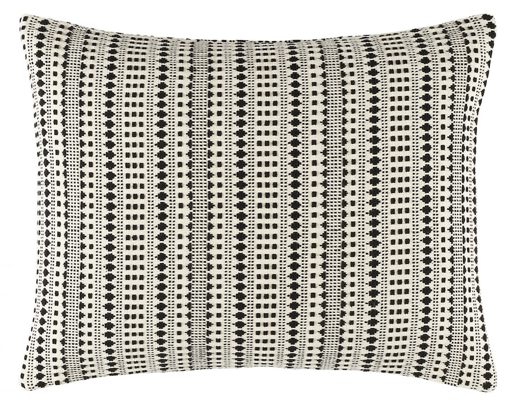 Pine Cone Hill's Fira Jacquard Black is both sweet and striking. This versatile cotton collection is hefty enough to function as a lightweight layer on its own in warmer months or as a companion to your quilt or duvet in transitional seasons. Modern meets Cottage with a graphic Fairisle-inspired pattern. Knife edge finish with 1" hem on all sides. Shams are double sided. Tie closure. Dutch Euro zipper closure. 100% cotton.