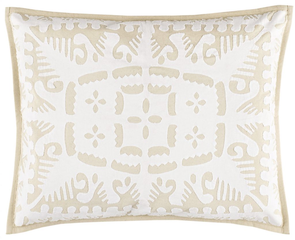 Pine Cone Hill's Knight Wood Cutwork Natural is part of the Kit Kemp collaboration. The Knight Wood Cutwork Coverlet and Shams are an all-season piece exquisitely hand stitched to exude heirloom elegance. Twin/Twin XL coverlets have a longer fit to accommodate both standard twin and twin XL dorm mattresses. Light weight quilting with kantha stitching. Reverse is solid. Made in India.