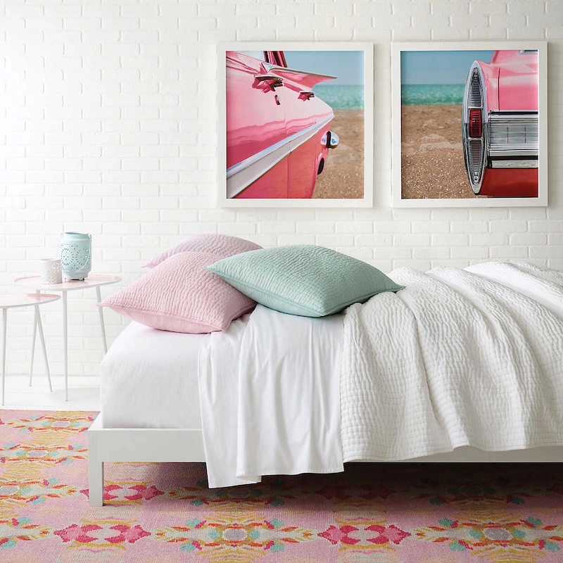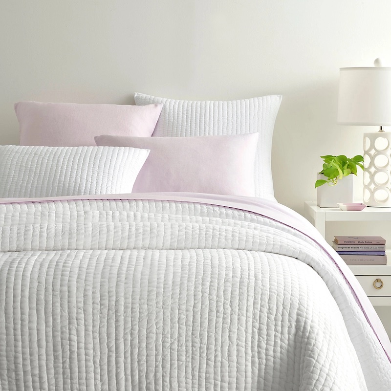 Pine Cone Hill's Lana Voile is a lightweight layer of a quilted cloud. Breezy cotton voile on the front and back plus a thin layer of batting tied together with traditional hand stitched quilting channels creates the perfect spring-into-summer soft and light seasonal covers. 1" vertical stitch pattern with 1/2" self hem on all sides. 100% cotton.
