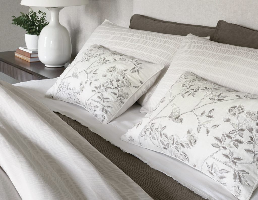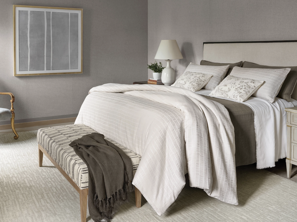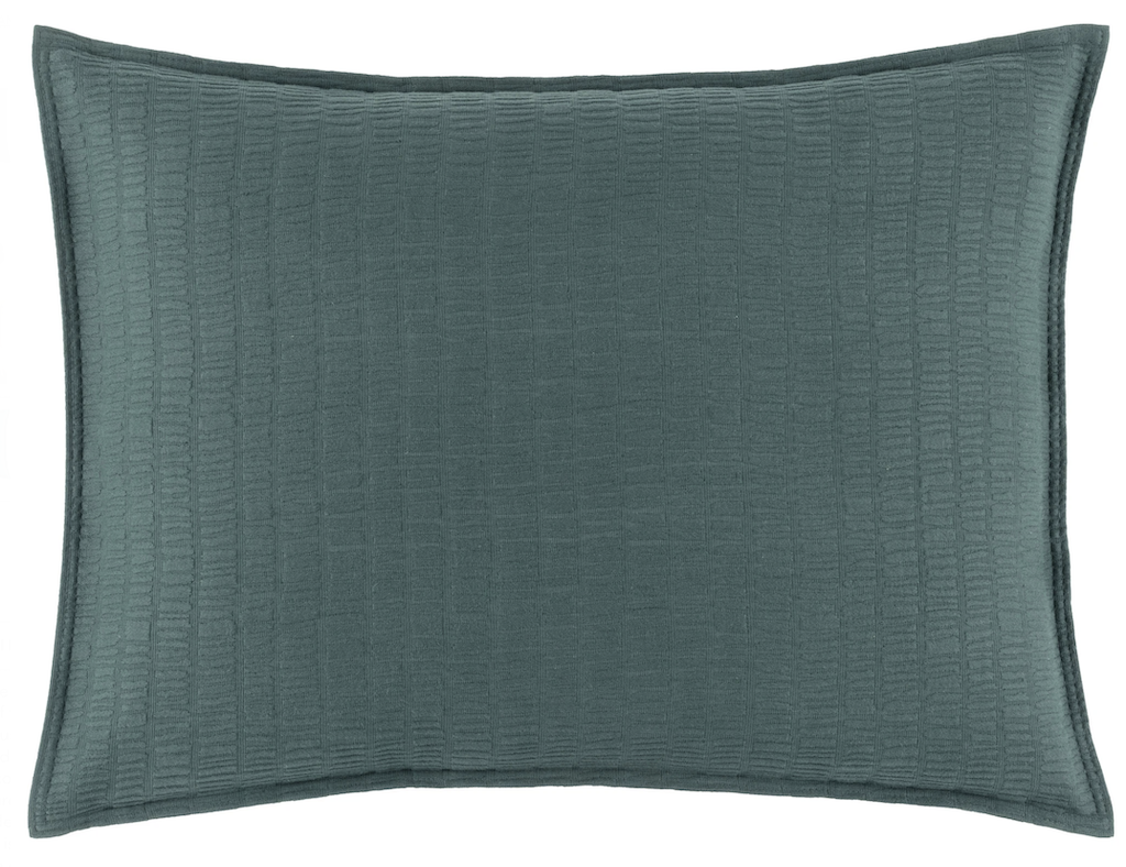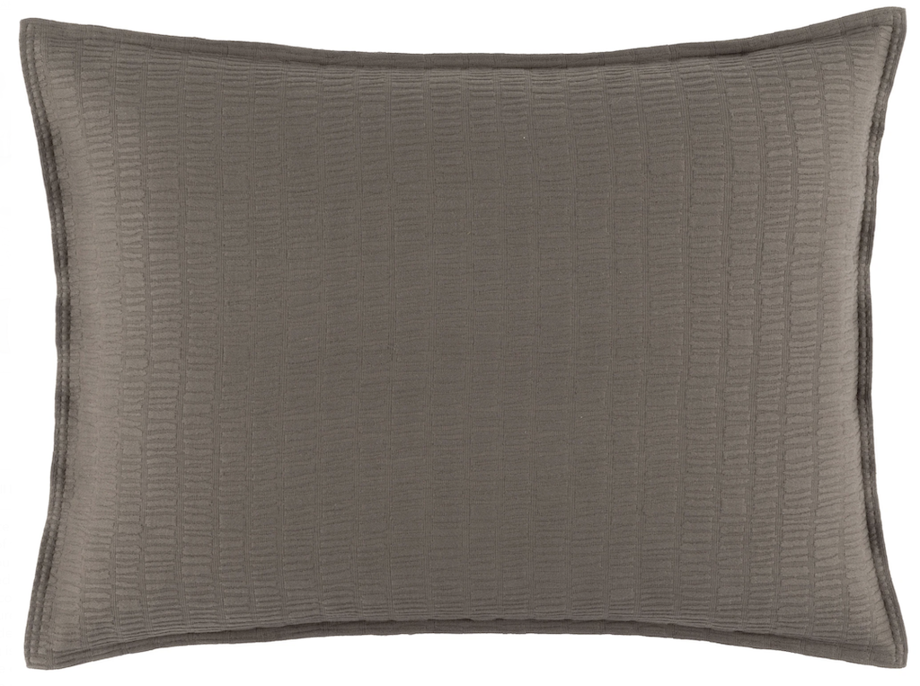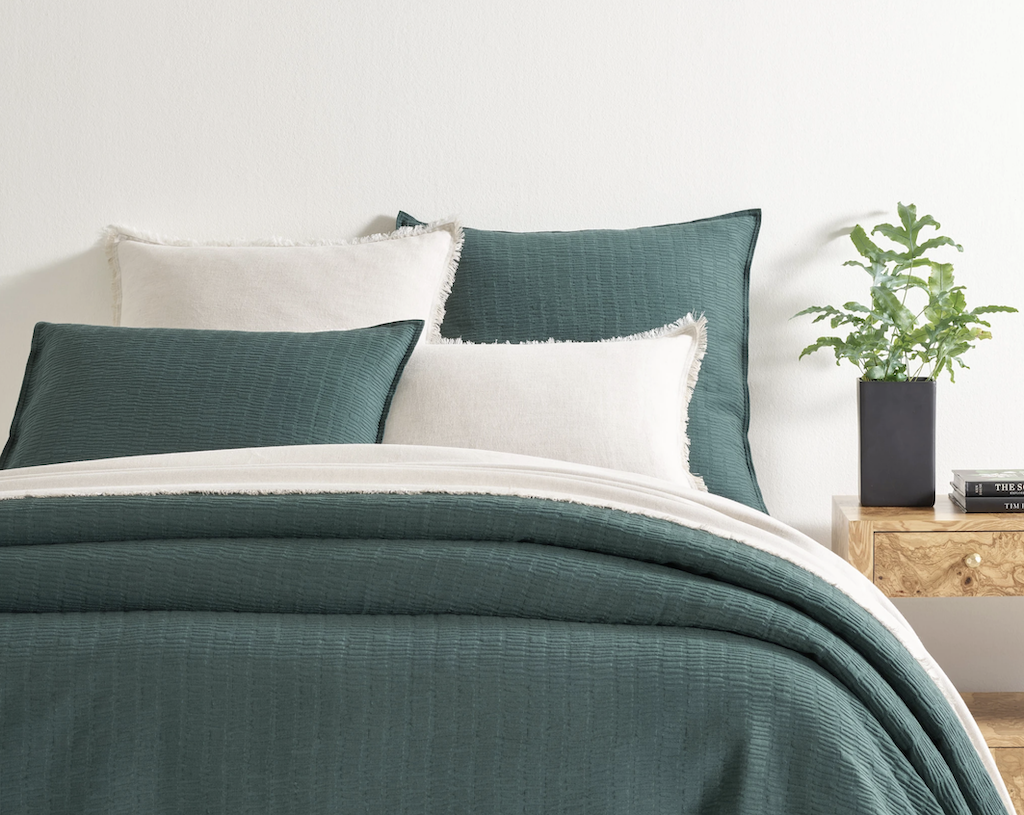 Pine Cone Hill's Roark matelassé has a tempting texture and sensuous feel. Its rhythmical, irregular design of this cotton matelassé coverlet conjures ancient sea fossils. Meticulously woven for us on jacquard looms, the double layer cloth has raised pockets that deliver extra nighttime insulation. Laundered to lived-in comfort. Offered in an earthy range of deep mineral shades, a signature rich neutral palette of Marie Flanigan, the Architect, Designer, Founder, and Principal of Marie Flanigan Interiors. 1" hem on 3 sides with 1/2" top hem. Knife edge finish. 100% cotton. Made in Portugal.