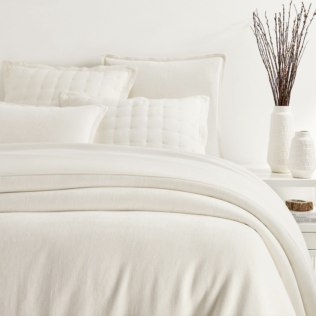 Pine Cone Hill's Sumptuous Chenille Ivory is exquisitely supple, sumptuous, and washable chenille. Wonderful for layering in winter or on its own as a main cover in warmer seasons. Highly versatile, it can also be thrown across a sofa for a touch of cozy, velvet-like sophistication. Knife edge finish. 54% Cotton/46% Viscose. Handmade in Portugal of premium cotton chenille, its lustrous texture gets even softer and more beautiful with every wash.
