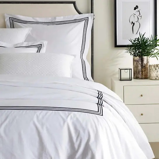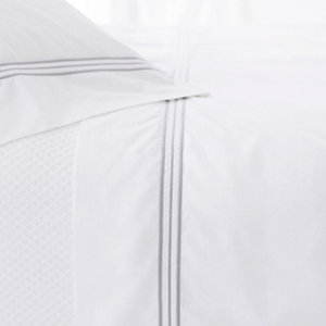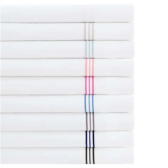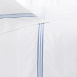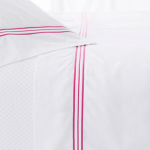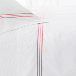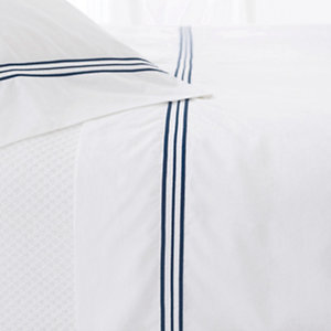 A simple, three-lined pattern adds a touch of refinement to the classic white. Pine Cone Hill's newest hotel look. Available in nine colors. Fitted sheet available in white only. 400 thread count.