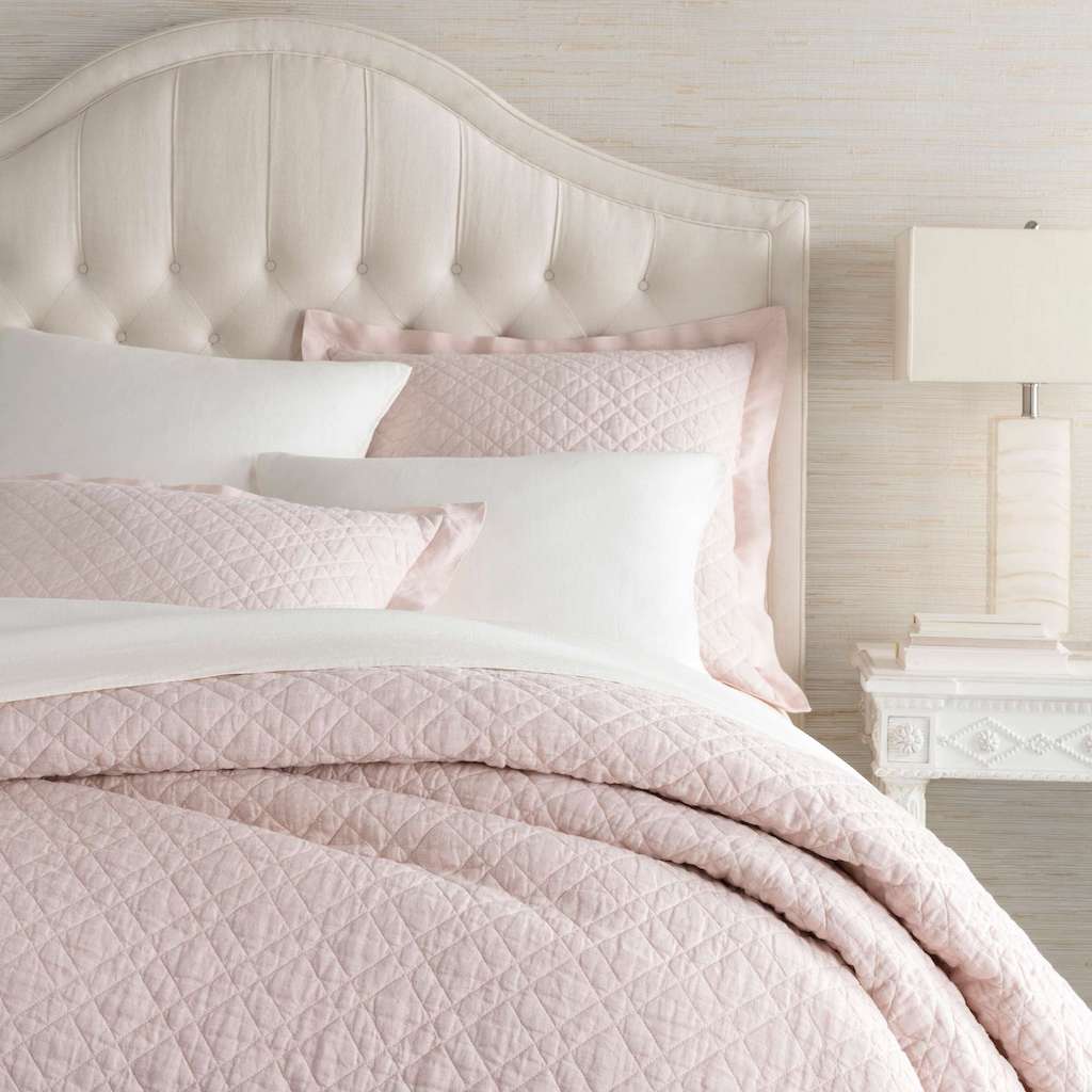 Pine Cone Hill's Washed Linen Quilts and Shams are Lush linen on the front with a thin layer of batting in between and silky cotton percale of the back add up to the perfect extra layer for transitional spring nights. Traditional diamond quilting stitch keeps it all together. Laundered linen quilt is washed and tumbled to soft perfection for a relaxed, lived in look. They capture linen's timeless appeal with this casually elegant modern take on the classic quilt. 100% Linen top with 100% rayon on the reverse.