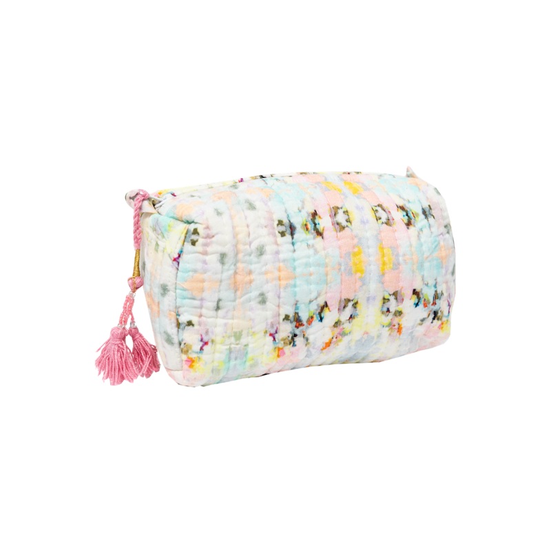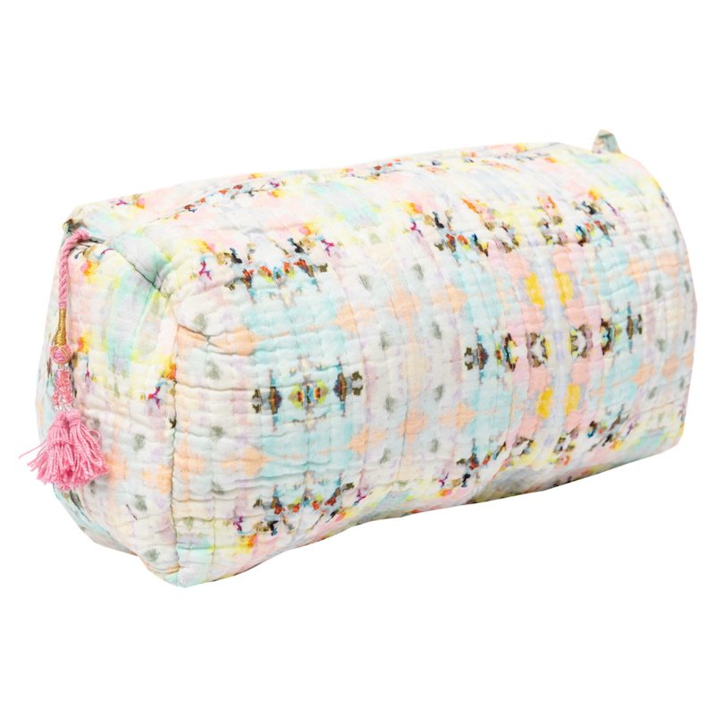 Say hello to Laura Park Designs Brooks Avenue cosmetic bags in pastels! They are so cute and practical. This bag is about to become your favorite travel accessory. The plastic lining inside gives you an easy wipeable cleanup. Inside of bag contains plastic lining and it has a colored tassel included on the zipper. Available in large and small sizes.100% Cotton.
