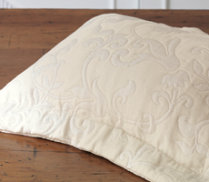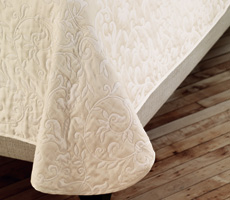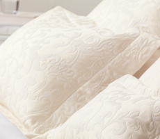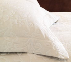 Napoli coverlets and shams combine a very traditional Italian damask motif with a touch of lurex woven into the weft to give the design a unique bit of sparkle and bling.Call for pricing.