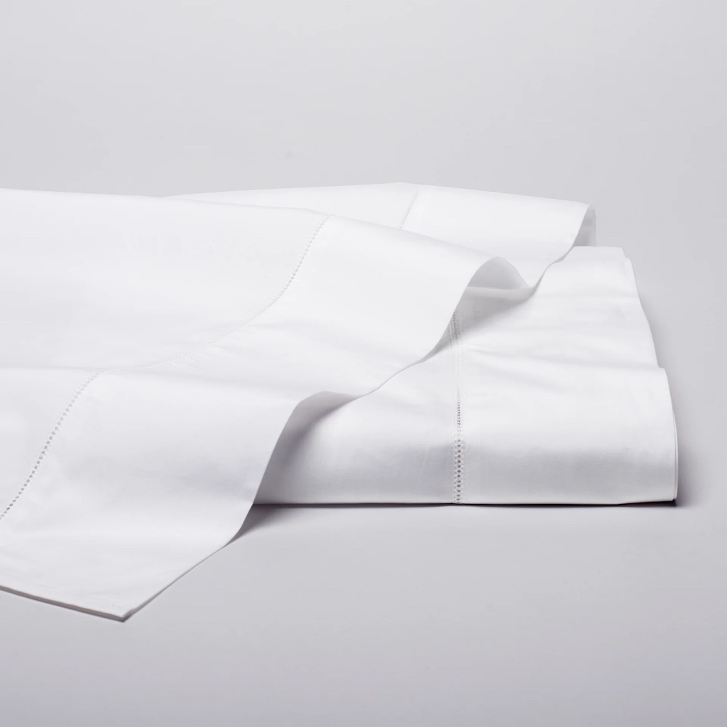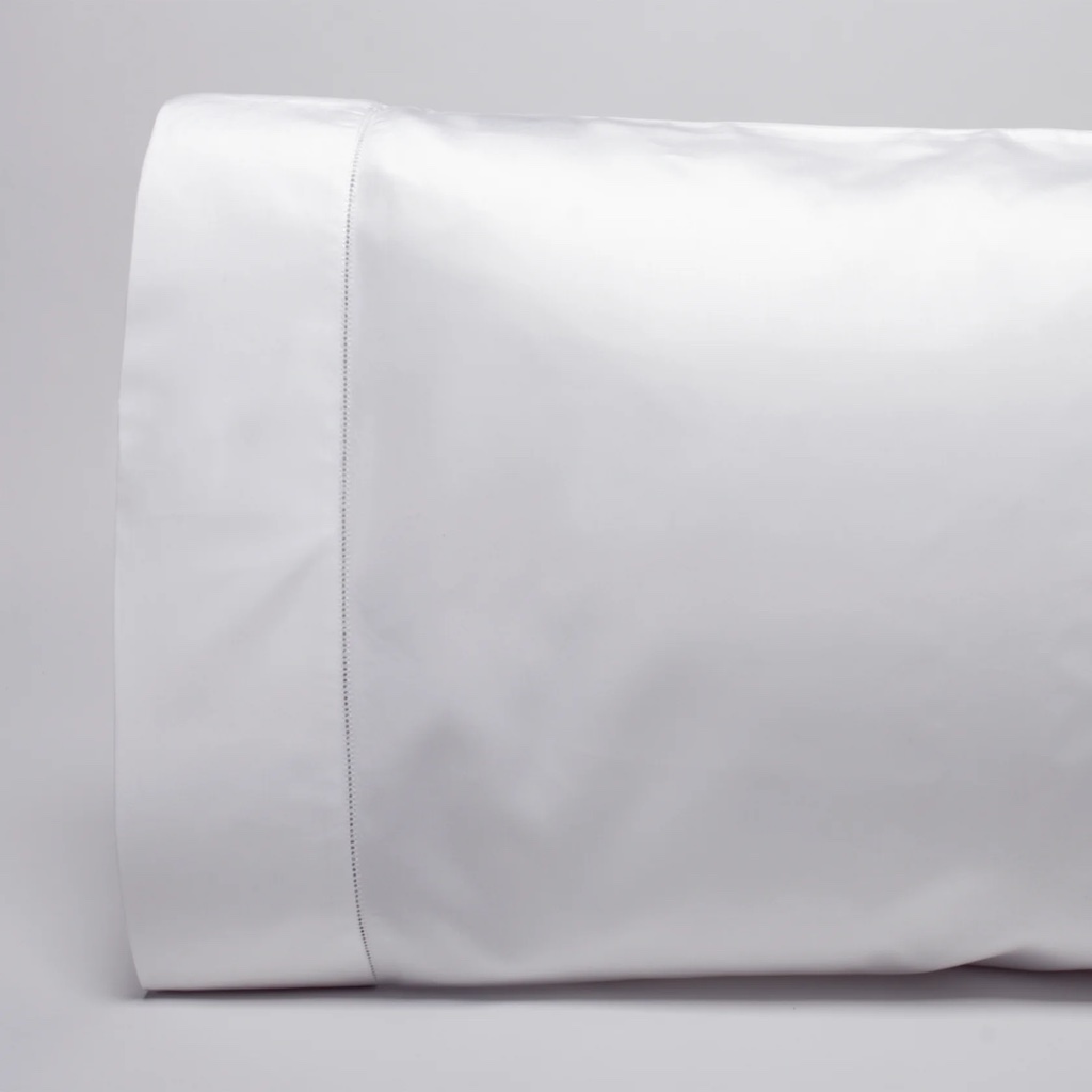 Scandia's Alesandra Percale Collection is woven from Egyptian cotton in an extra-long staple length which is an indicator of superior softness and strength. Carrying on old-world techniques and tradition, the fibers are spun into a 500-thread-count percale weave by one of the last family-owned fabric mills in Northern Italy, then detailed with a beautiful hemstitch border. The result is bedding that’s exceptionally smooth, crisp, and comfortable across all seasons and climates. Offered in classic white and ivory. 100% Supima cotton percale. 500 thread count with a hemstitch finish. Woven and finished in Italy.
