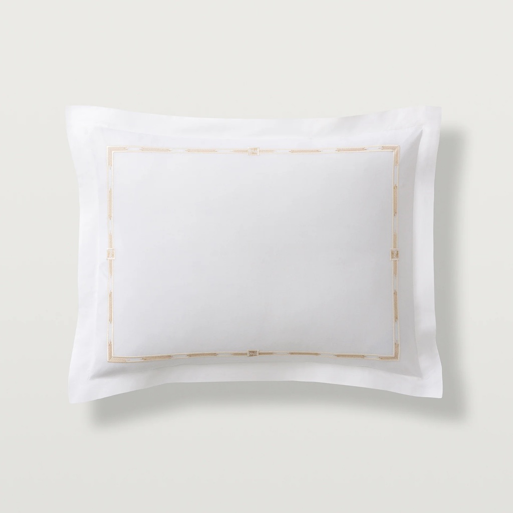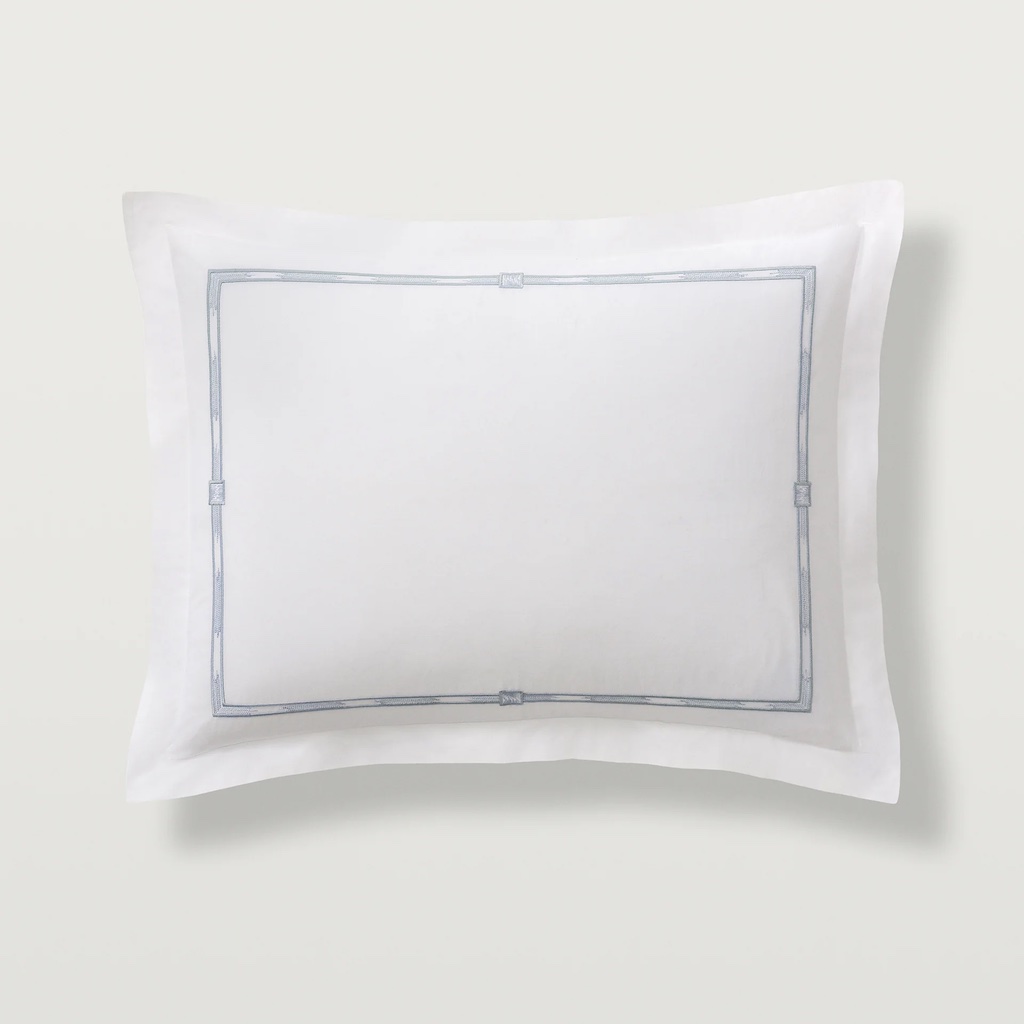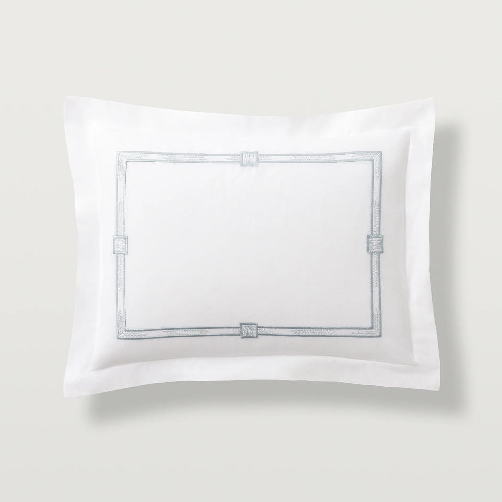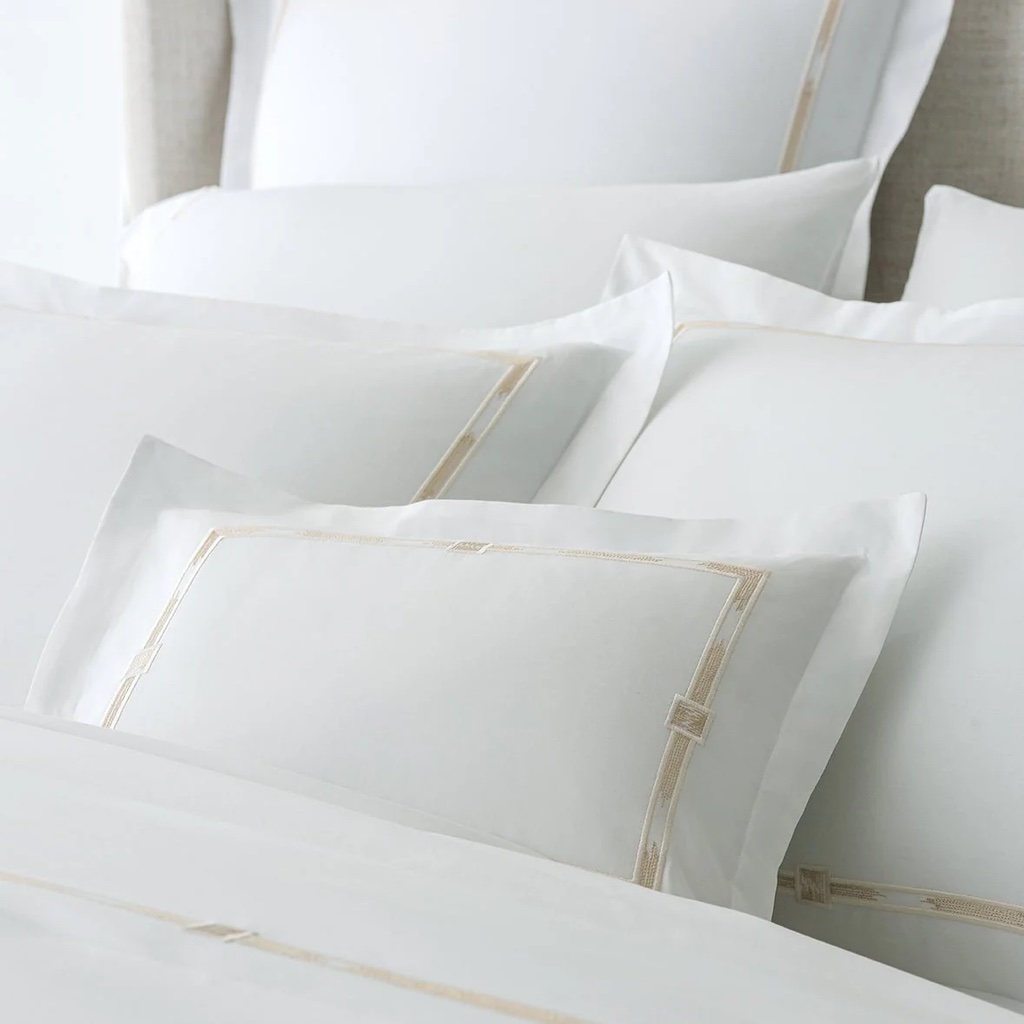 Scandia Home's Lisetta couples the weight and softness of a luxury everyday staple with a touch of artful style. Lisetta has refined, slim flanges that are paralleled by the narrow embroidery, which evokes two beautiful textile traditions: the eternal flame stitch pattern and hand-dyed ikats. Skilled artisans, working in a family-run atelier in Italy's Chianti region, create each embroidered border creating a captivating and completely unique effect. 400 TC with an embroidered with double border hemstitch finish. 100% Egyptian cotton percale. Woven and sewn in Italy.