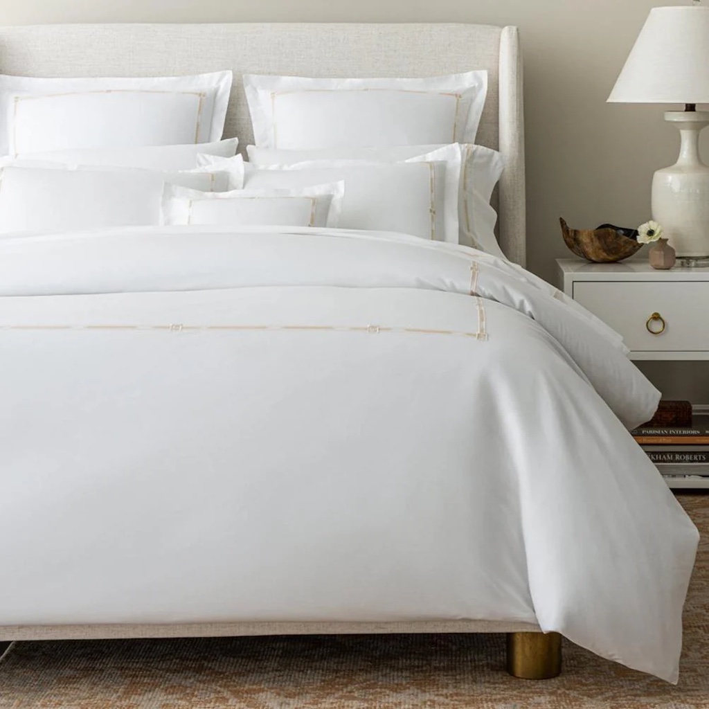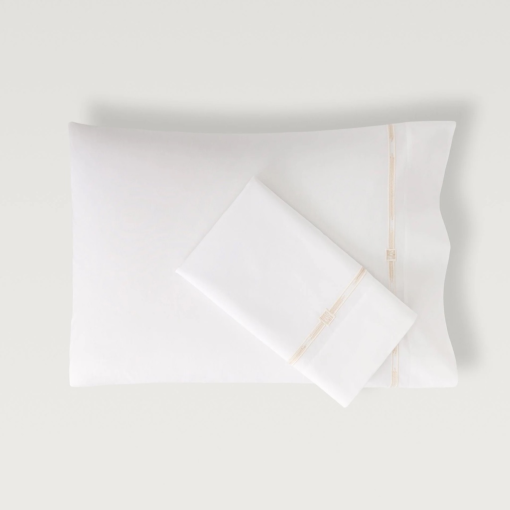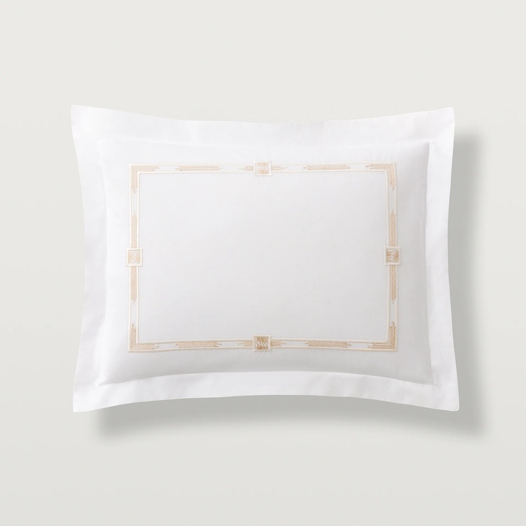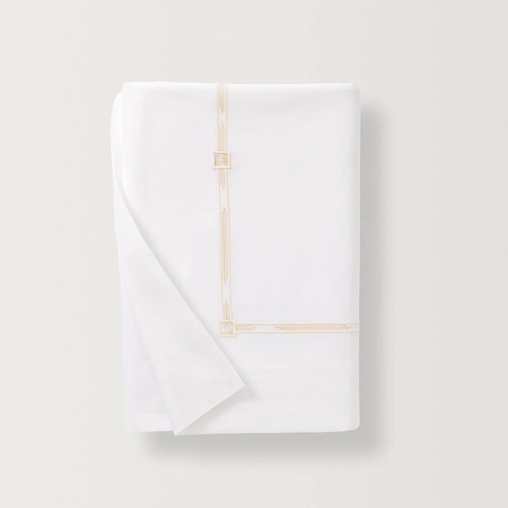 Scandia Home's Lisetta couples the weight and softness of a luxury everyday staple with a touch of artful style. Lisetta has refined, slim flanges that are paralleled by the narrow embroidery, which evokes two beautiful textile traditions: the eternal flame stitch pattern and hand-dyed ikats. Skilled artisans, working in a family-run atelier in Italy's Chianti region, create each embroidered border creating a captivating and completely unique effect. 400 TC with an embroidered with double border hemstitch finish. 100% Egyptian cotton percale. Woven and sewn in Italy.