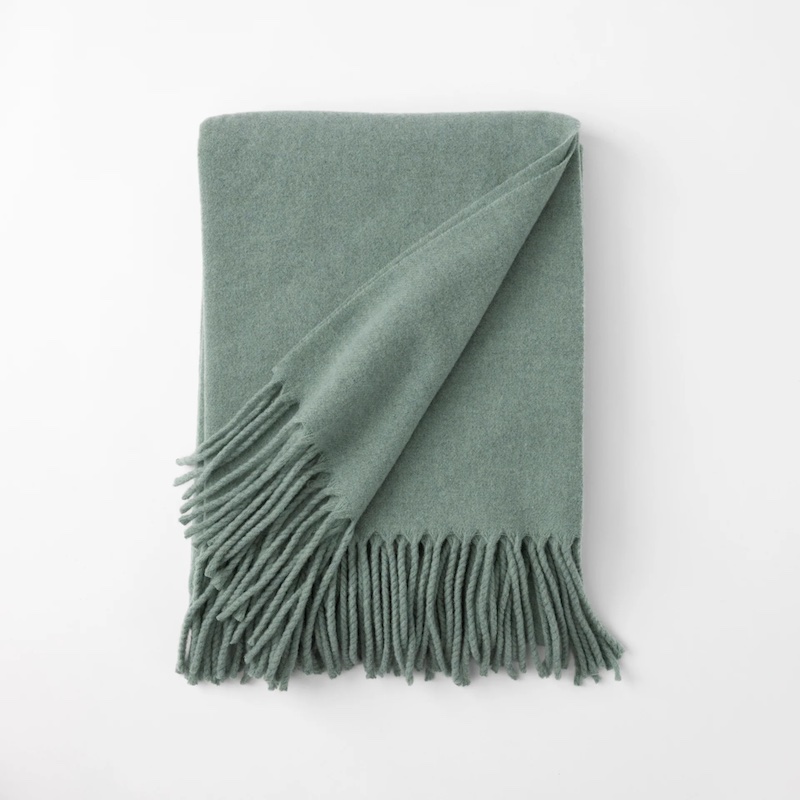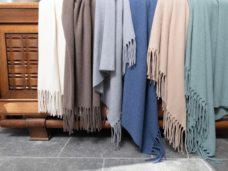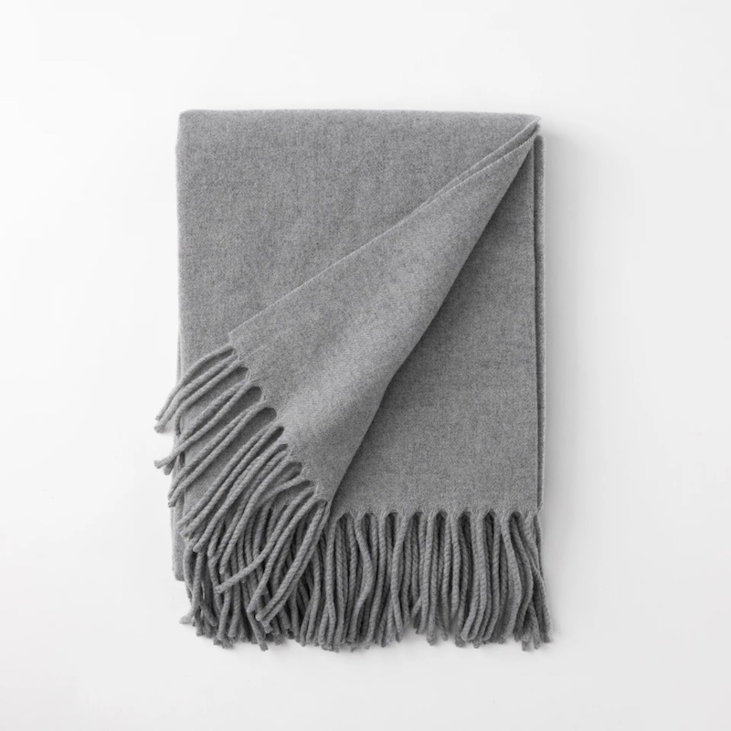 Scandia Home's Pietro is perfectly practical and transitions beautifully through all seasons. Heathered yarn hues add intriguing tonal variations, while the extra-long fringe delivers a decidedly extravagant touch. Carrying on a rich tradition of textile weaving in Northern Italy, each Pietro throw is loomed in a mill near Lake Como, where the same exacting standards for quality and creativity have been in place for more than half a century. Pietro is soft, lightweight, breathable, and truly lasting. Offered in Classic Grey, Lake Blue, Lichen, Nougat, and Truffle. 100% Lambswool. Woven in Italy.