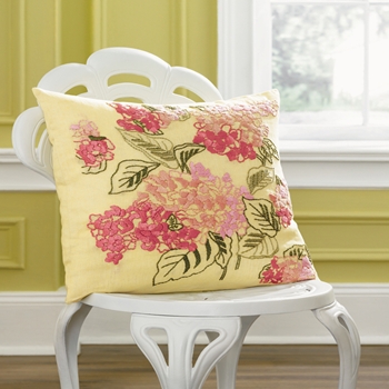 From Sferra's 1891 collection, Dorothy is a floral crewel like pillow on a butter linen background. Ships with insert. Retired -- one in stock.