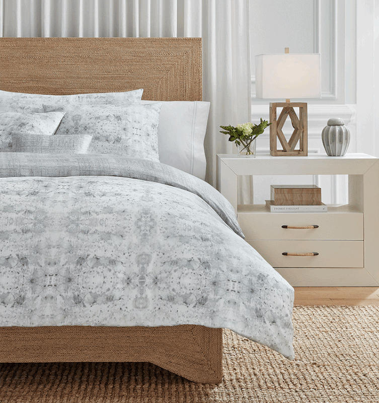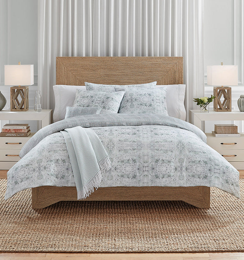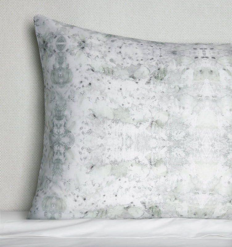 Sferra's Astratto is modern and chic. Printed with an abstract botanical design in shades of green and grey. The design concept was inspired by pressed flowers. The reverse side features a multicolor linear pattern and is finished with zipper closures on the sham and duvet cover to create a truly reversible style. Knife edge and plain hem. Sateen Print. 100% Italian woven long staple cotton.