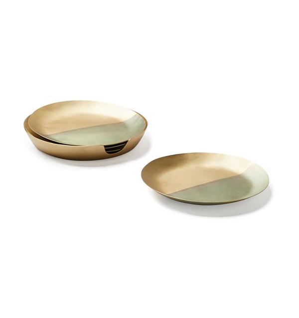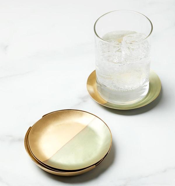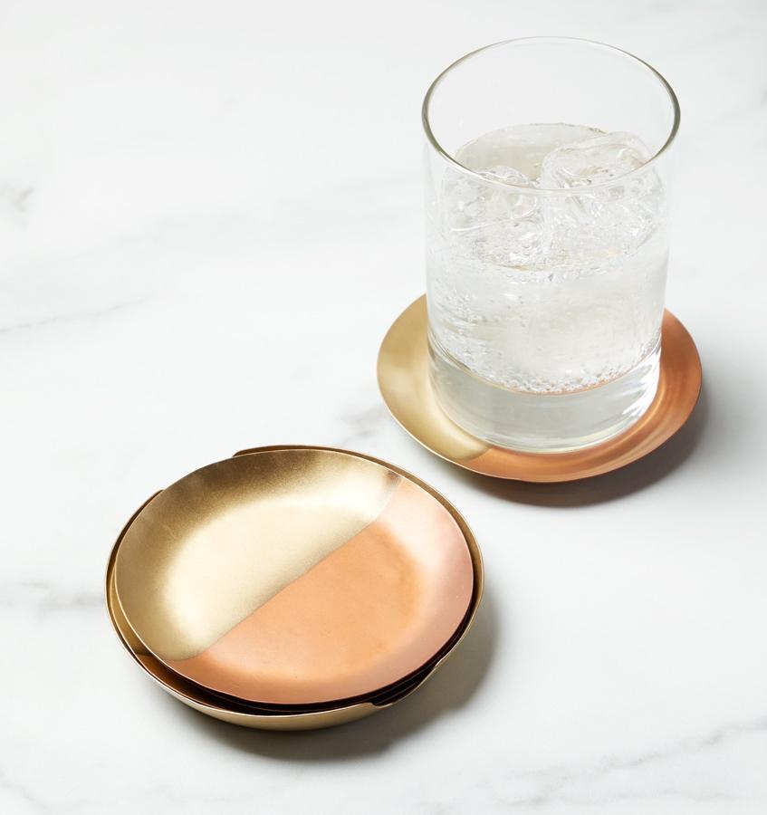 Sferra's Campania two-toned, brass coasters are handcrafted with earthy hues and a matte finish. Each set comes with a coordinating brass tray and is perfect for gifting year-round. Sold in a boxed set of four.