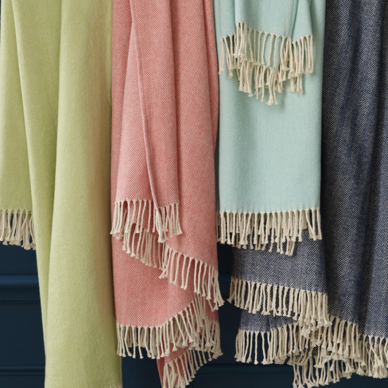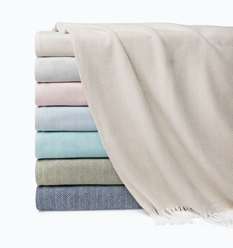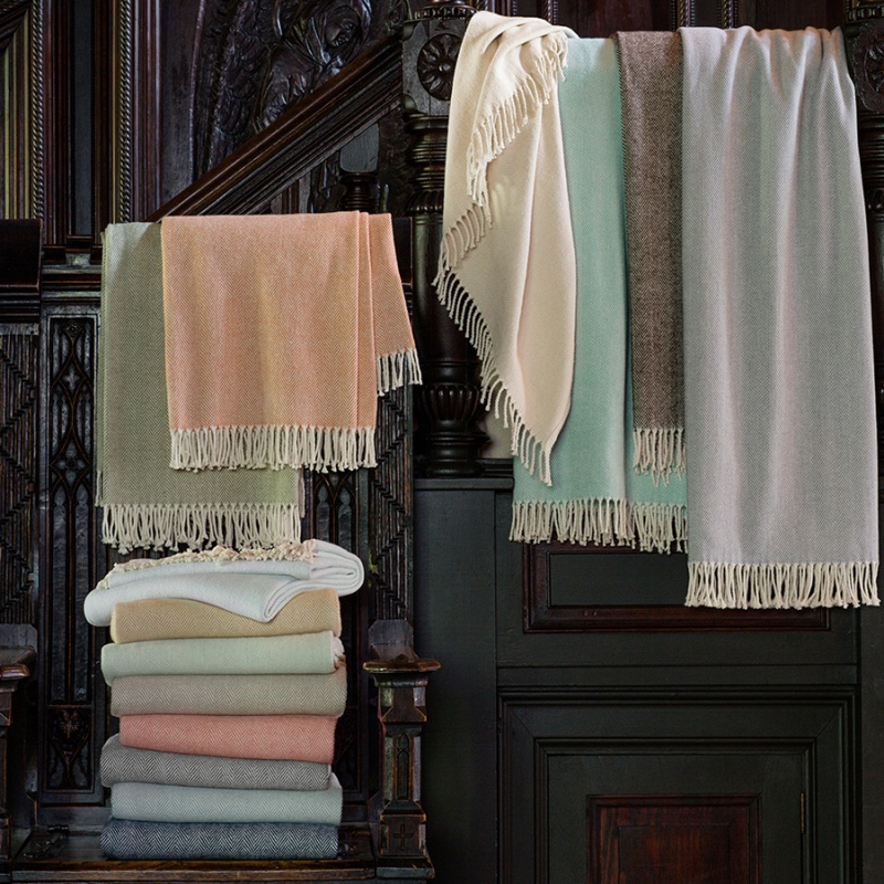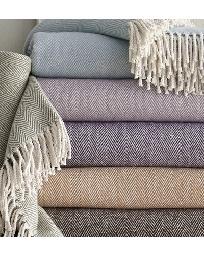 Celine throw blends soft color with cream in a herringbone weave, and