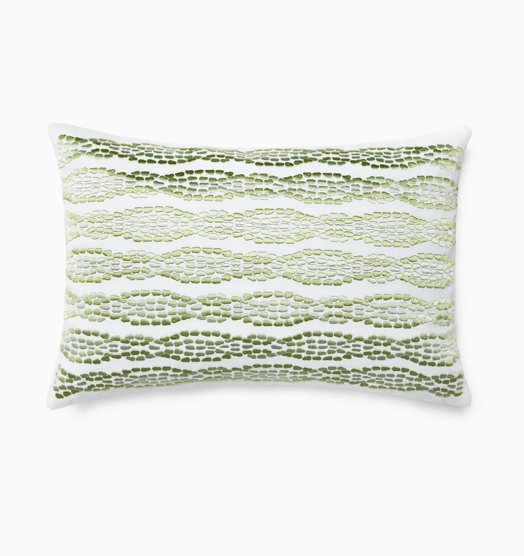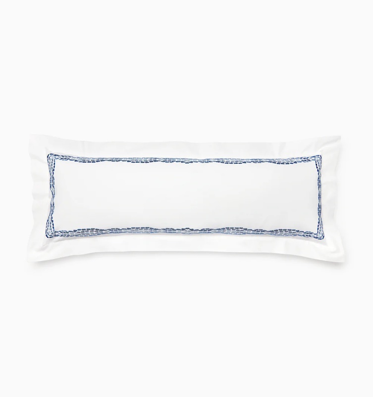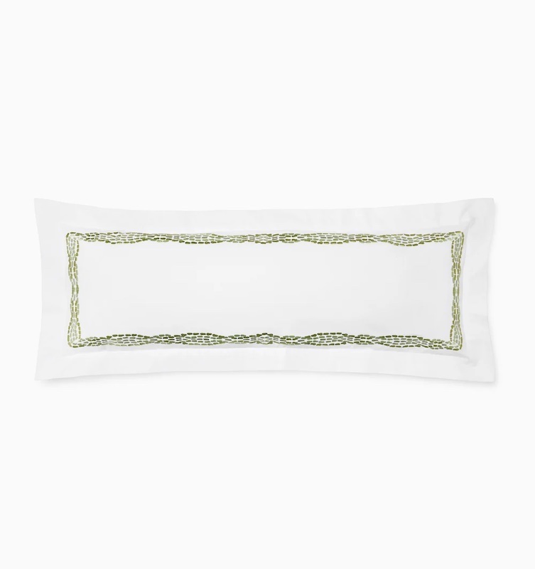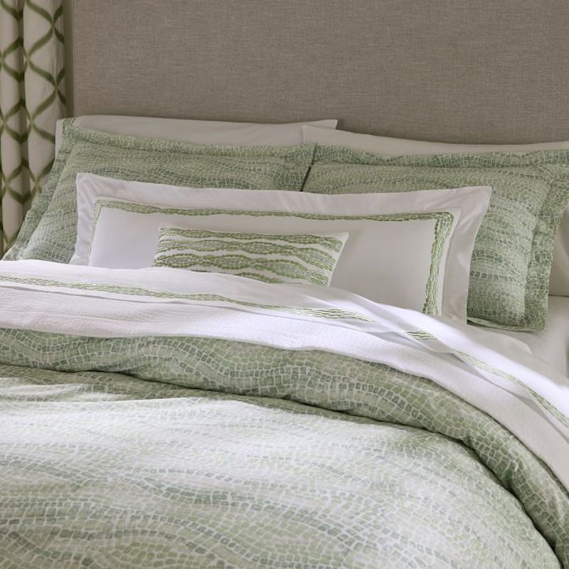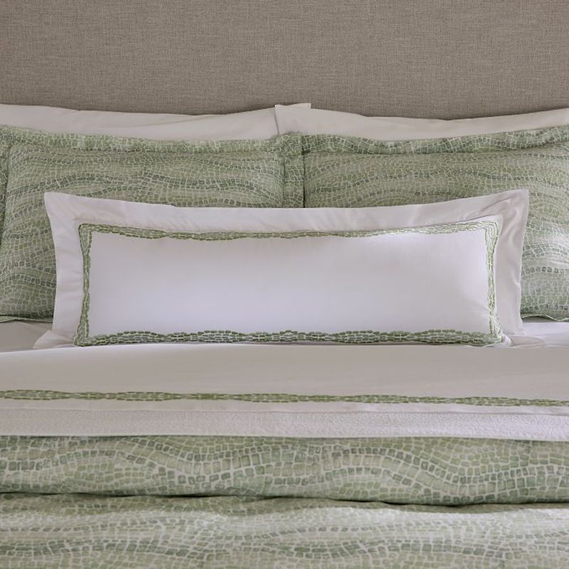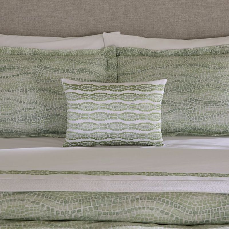 Sferra's Cobblestones decorative pillows offer the perfect balance of classical inspiration and modern refinement, inviting a piece of Greeceās storied heritage into your home. An embroidered mosaic pattern of willow green and subtly shaded tones flows like a rhythmic pattern, creating a serene yet dynamic canvas that transforms the bed into a work of art. Hidden Zipper Closure. Piece-dyed with Machine Embroidery. 100% Cotton Exclusive of Decoration. Country of Origin: Italy.