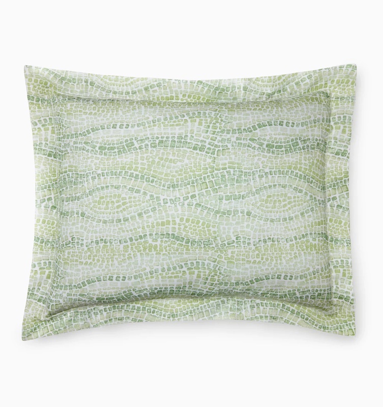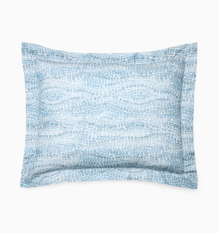 Sferra's Cobblestones by SFERRA x Scalamandré was originally designed in 1960 and inspired by the Greek historical city of Mystras. Cobblestones' motif reflects Scalamandré’s commitment to timeless elegance. Once rendered in single-color printed cotton, Cobblestones has now been reimagined with a fresh, transitional sensibility for today’s design aesthetics. This updated version marries the pattern’s rich Byzantine roots with a contemporary softness: a watercolor wash effect brings depth and nuance to the print design, while the embroidered elements of this Italian-crafted bedding collection lend added dimension and tactile luxury. Cobblestones offers the perfect balance of classical inspiration and modern refinement, inviting a piece of Greece’s storied heritage into your home. Smooth, Cool, and Crisp feel. Medium to Heavy Weight. Percale. 100% Long-Staple Cotton. Country of Origin: Italy.