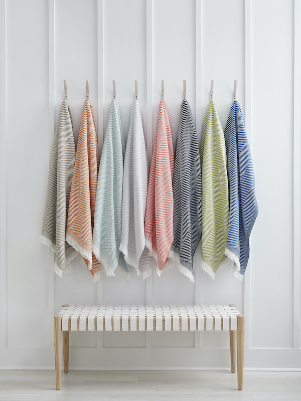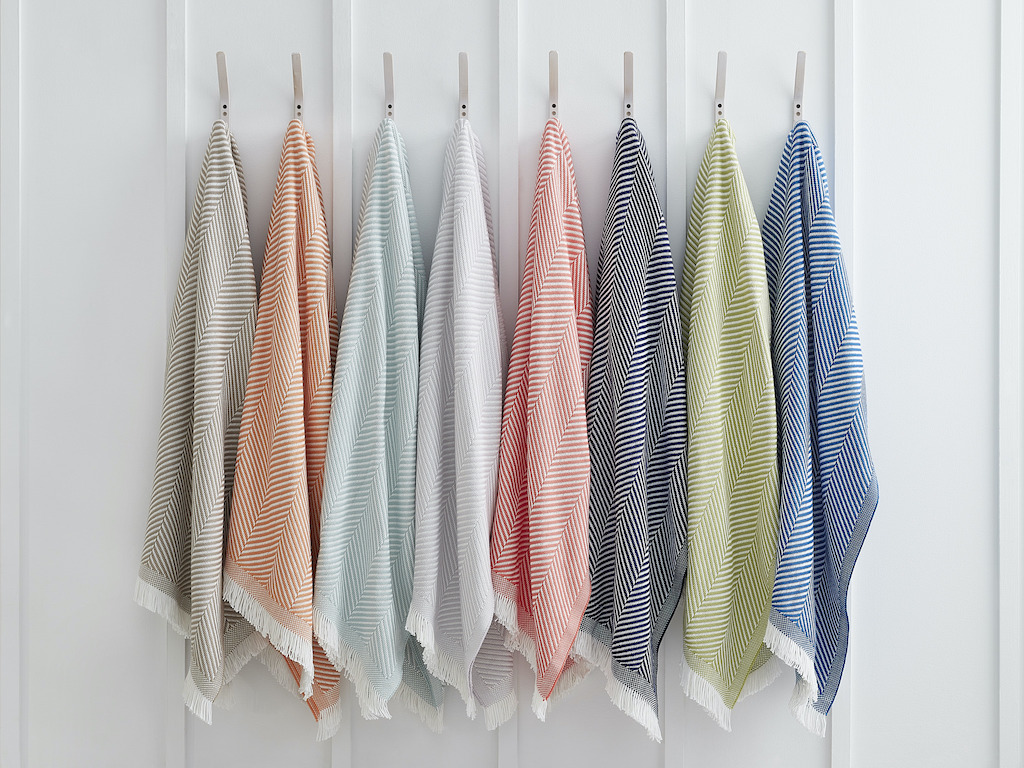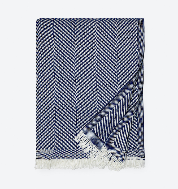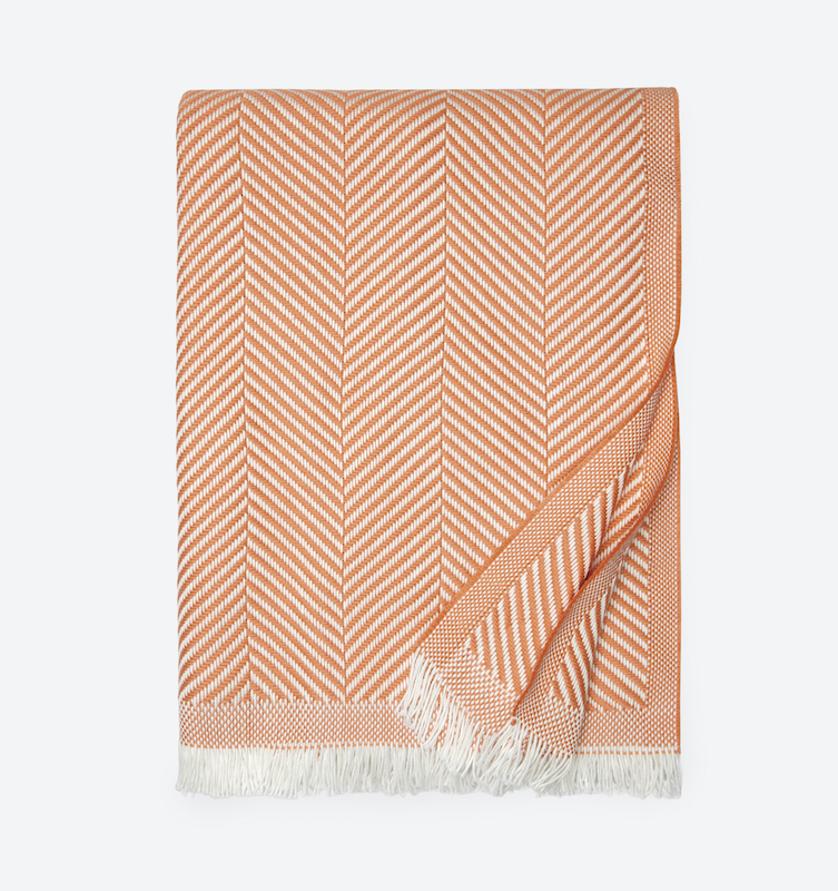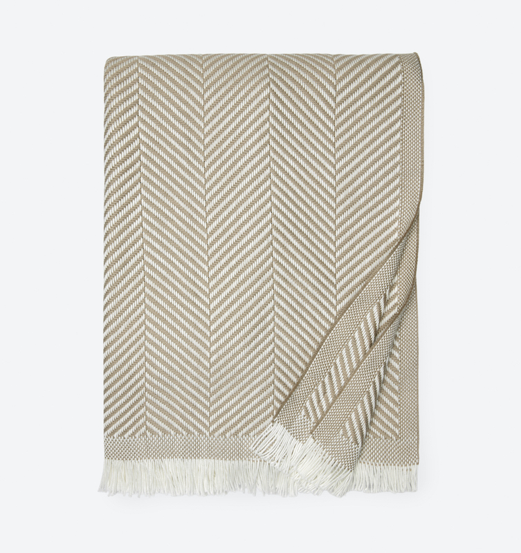 Sferra's Costa throws are light and cheerful. It is a throw of white and colorful threads that are woven into a crisp herringbone pattern. It's lightweight cotton throw redolent of sun-dappled mornings in Nantucket. They are great during a cool breeze or to add a pop of color to your favorite chair. Selvedge on all sides with fringe on top and bottom. Yarn-dyed. 100% cotton. Made in Italy.