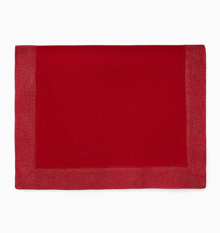 Filetto, is 100% linen and bordered in either a solid color or metallic gold or silver. Available in sets of four in napkins, cocktail napkins and placemats and in matching runners. Great for the Holidays! You can add a Sferra presentation box for each set of four -- put in quantity you need.