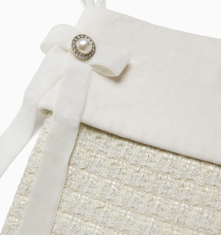 Sferra's Jingle Stocking is crafted from a yarn-dyed boucle body and finished with a solid velvet cuff, combining cozy texture with a refined contrast. It’s a festive classic that feels both playful and polished. With every detail, they evoke the nostalgia of wintry mornings, the glow of tree lights, and the anticipation of gifts to come. Each stocking is crafted to become a lasting piece of seasonal storytelling—hung with care and cherished year after year. Sferra’s holiday stockings are designed to conjure the spirit of holidays gone by—full of wonder, warmth, and quiet tradition. Yarn-dyed Boucle Body with Solid Velvet Cuff fabrication. Finished with Solid Velvet Cuff. Cuff: 100% Cotton Boucle: 90% Polyester, 5% Cotton, 5% Lurex Inner Lining: 100% Polyester. Size: 13 x 20"