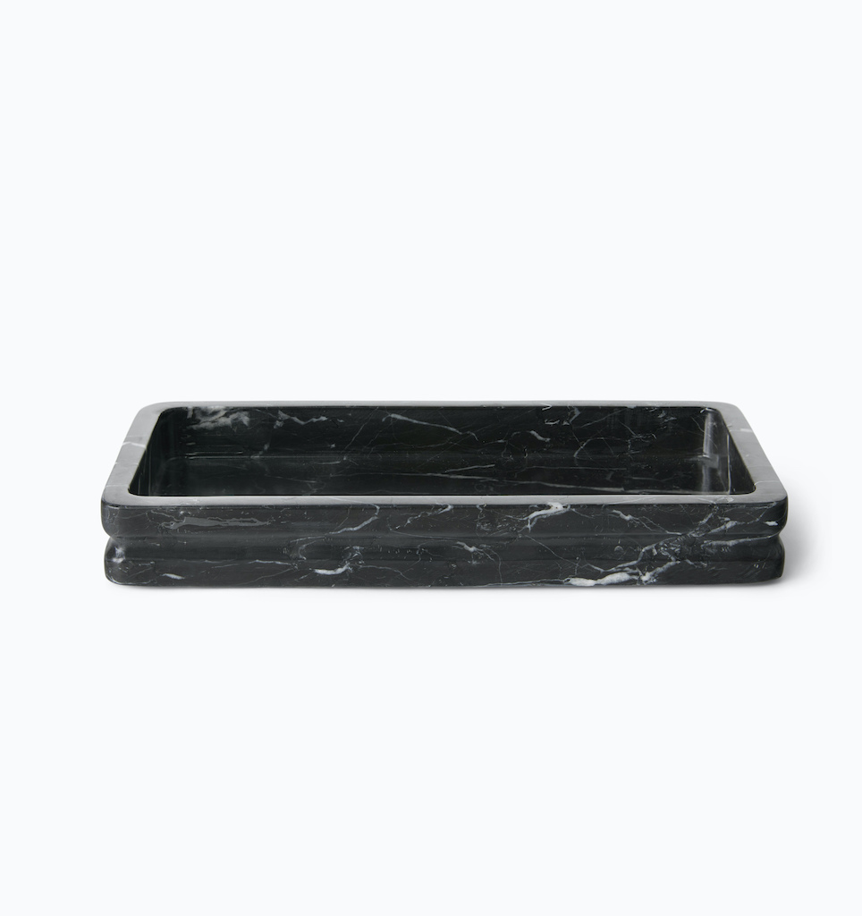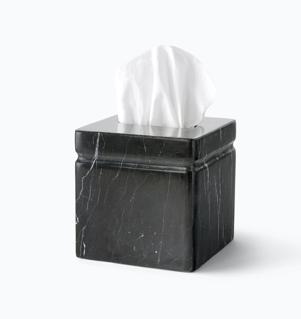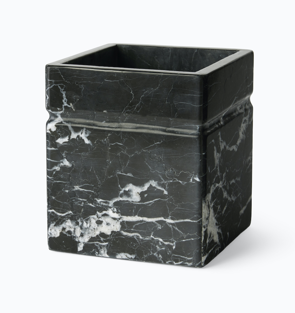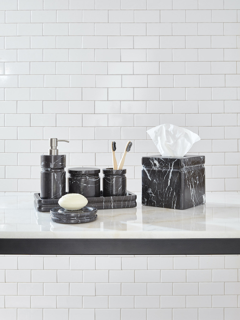 Sferra's Marquina bath accessories were designed to add character and impact to your intimate space. Meandering white veins grace gorgeous black marble.