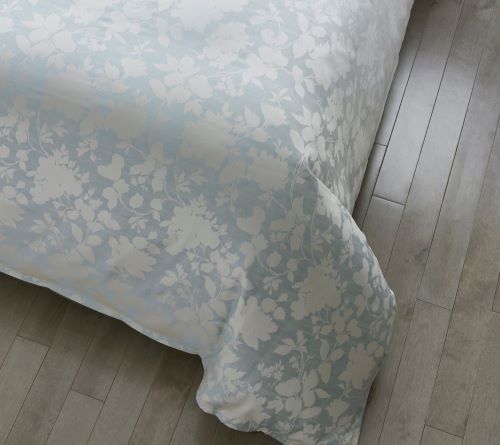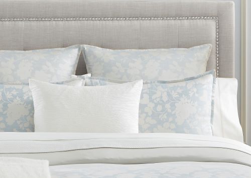 Nalia is an homage to the early Italian artisans and vendors. These craftsmen who demonstrated the delicacy of Sferra lacework using cyanotypes. Cyanotypes are blueprints of intricate designs. Nalia's floral motif, designed as if hand painted imitate those cyanotypes, while creating a silky and cascading ombre effect. Shades of blue cross woven with white in a sumptuous jacquard.
