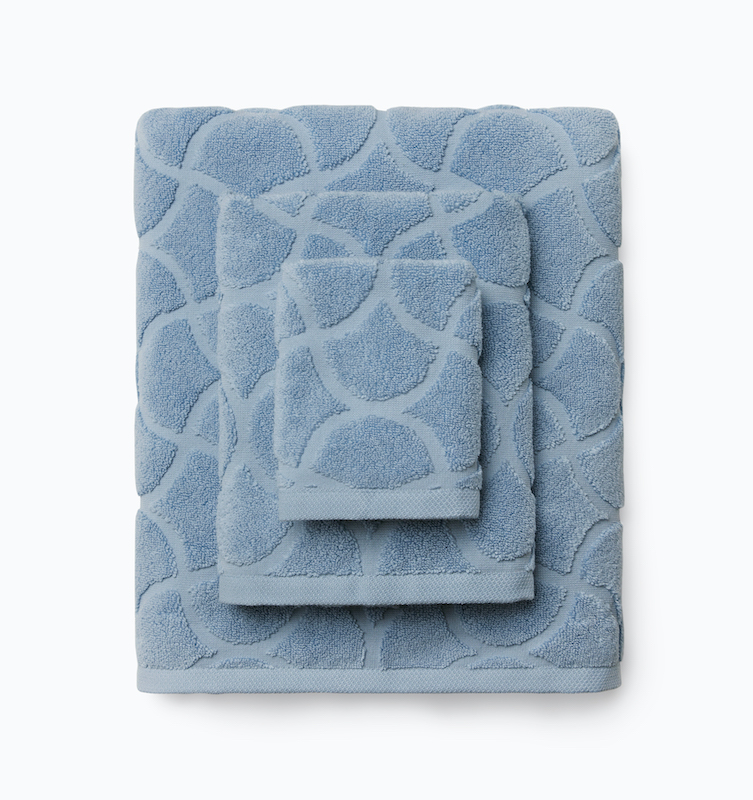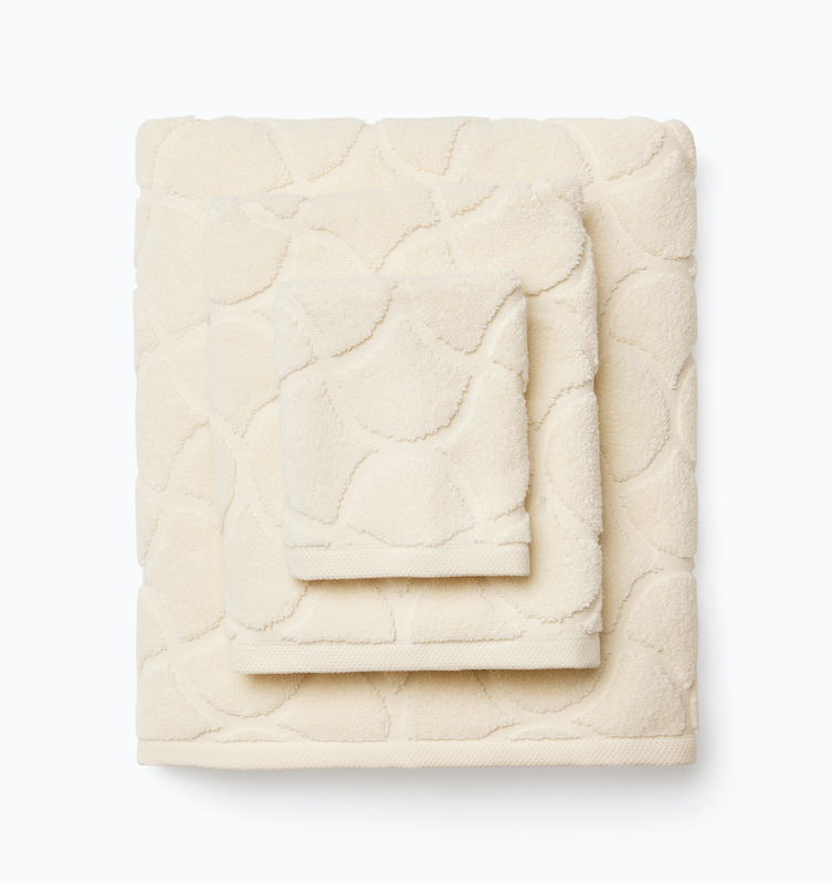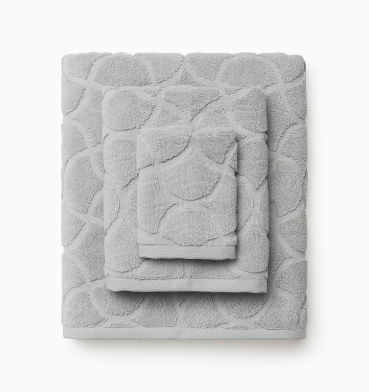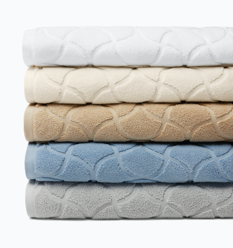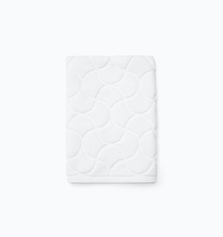 Experience refined bathing towels, meticulously crafted from premium long staple zero-twist cotton. The signature interlocking scalloped weave creates subtle dimensionality while delivering an exceptionally soft, cloud-like feel against the skin. Available in five understated colorways, these Portuguese-made towels combine weightless absorbency with a delicate sheen, elevating your daily routine with understated luxury and tactile sophistication.