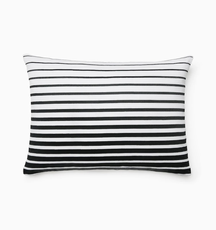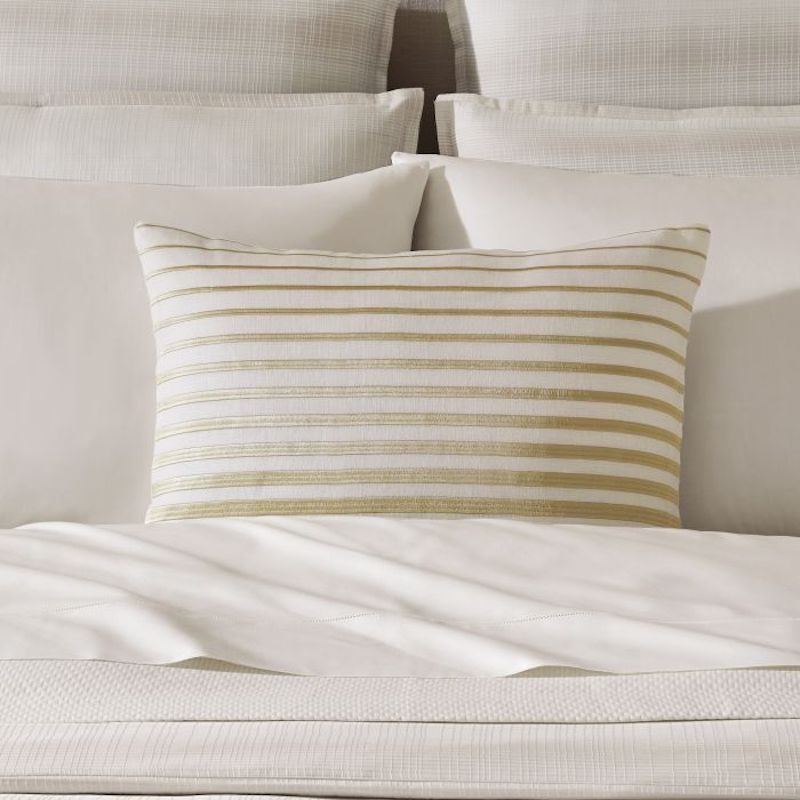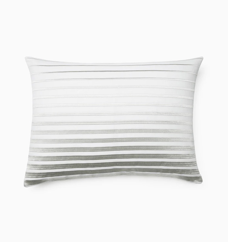 Sferra's Orizzonte Decorative Pillow has embroidered stripes that shift gently in tone, bringing depth and movement to a pure linen ground. The pattern offers a sense of order and calm, making it a grounding element in any space. In understated tones, Orizzonte pairs beautifully with Perugia and Arzano for a layered look that feels both graphic and intentional. Orizzonte draws from the quiet drama of the horizon, where light and shadow meet in perfect balance. Machine Embroidery. Knife Edge. 100% Linen. Lithuania.