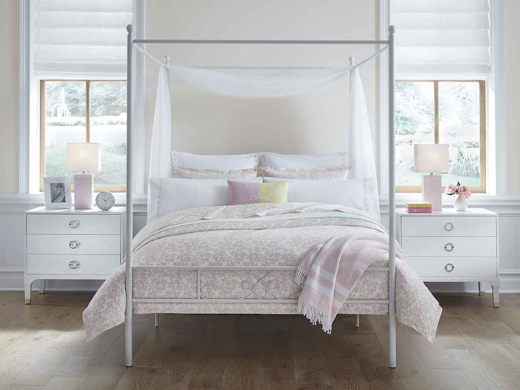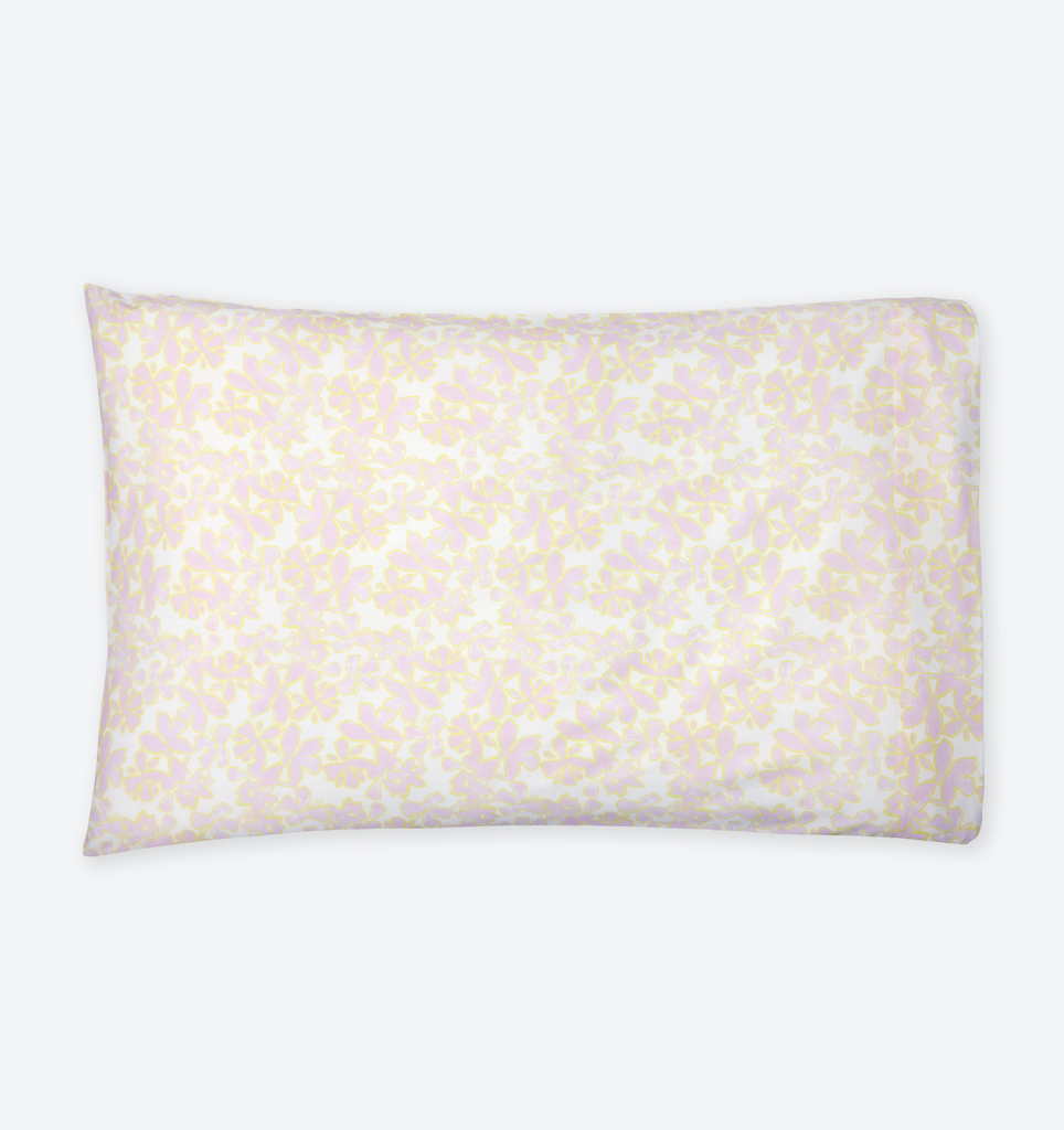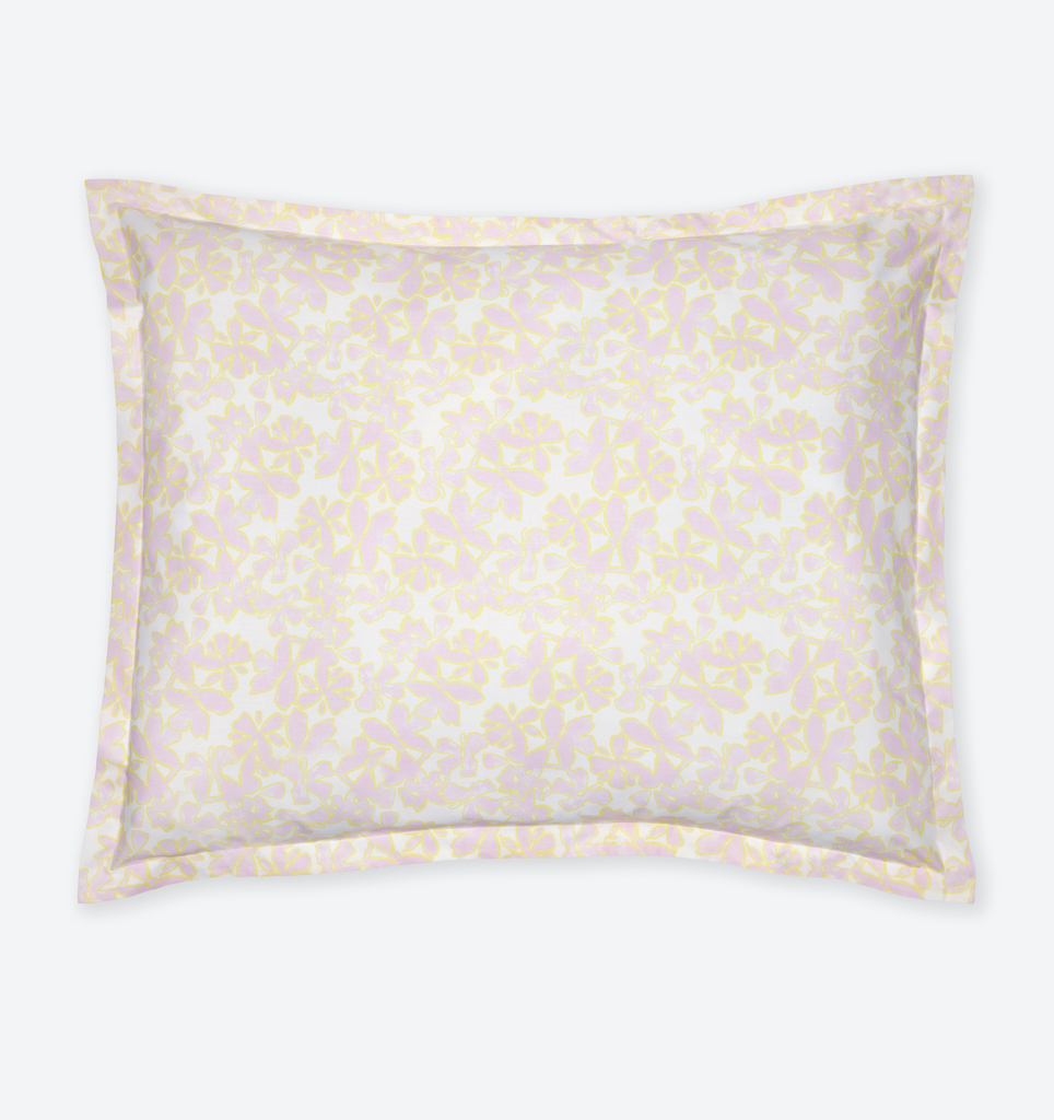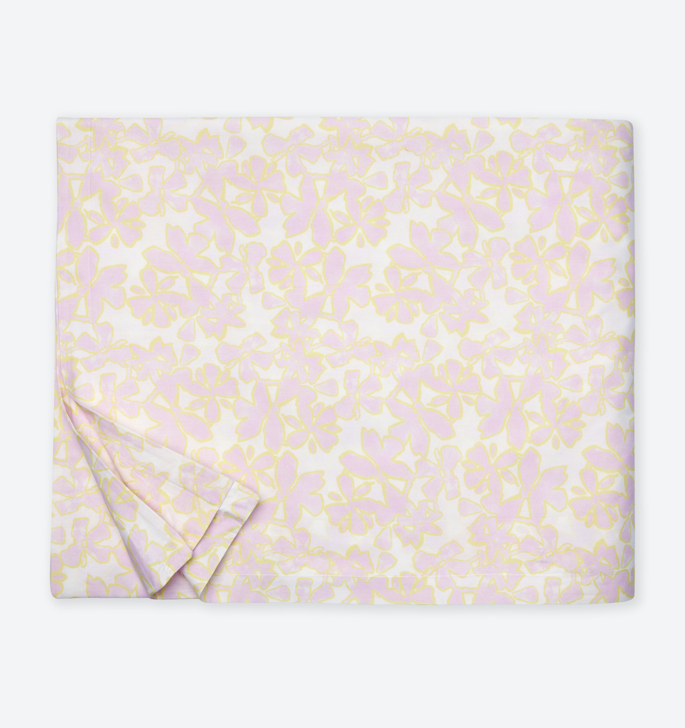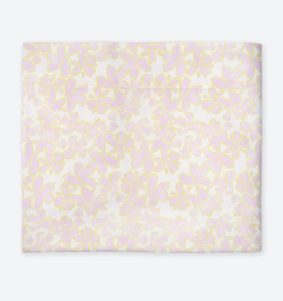 Sferra's Prato was inspired by springtime. It has Petal-pink and lemon-yellow flowers bloom into an irresistible all-over pattern. The coordinating Fiorina collection features a double border of yellow and pink satin-stitch overlaid by yellow and pink blossoms. Together, Prato and Fiorina create a bed as bright as it is enchanting, sparking many a sweet dream to come. It has a plain hem finish. Duvet Cover and shams have 1" mini flanges. Flat sheets and cases have 3" flanges. Embroidered percale 100% long-staple cotton Italy.