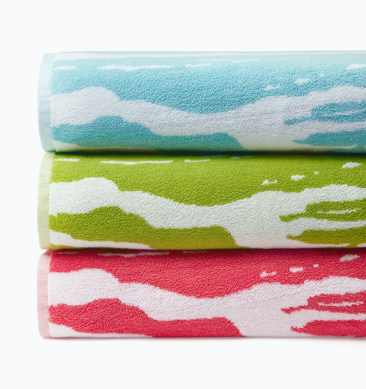 Experience artistic flair with Sferra's Sampieri beach towels, featuring hand-painted brushstroke patterns woven into Turkish jacquard terrycloth. Available in three sophisticated colorways—Clearwater, Coral, and Kiwi—each towel combines visual dynamism with exceptional absorbency. The yarn-dyed construction ensures color permanence and durability, while the textured surface provides both comfort and style. Perfect for discerning travelers who appreciate functional design with aesthetic depth, these towels elevate any poolside or beach setting. Crafted in Turkey.