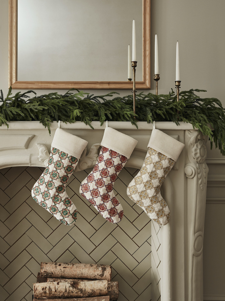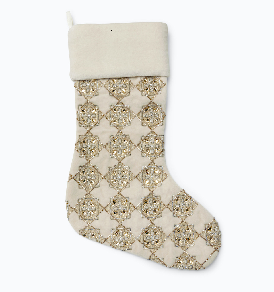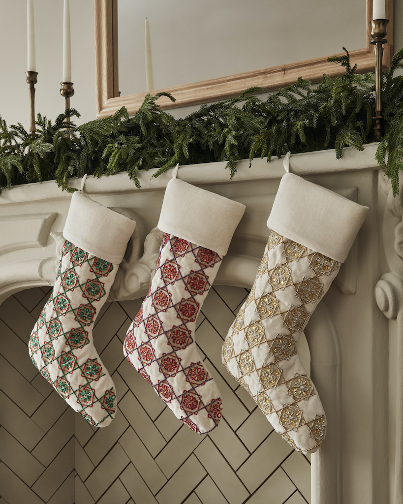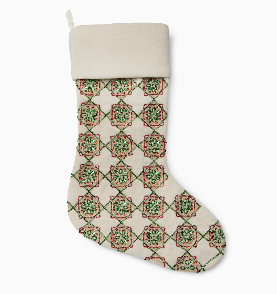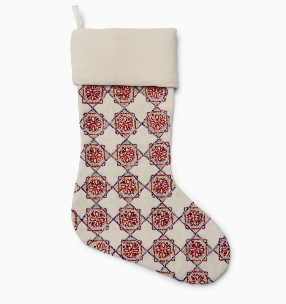 Sferra's Speranza Stockings are festive and sophisticated. It has stunning embroidery that was inspired from vintage Italian tiles. The classic holiday colors shines through on their velvet base.