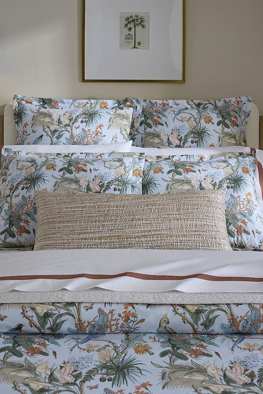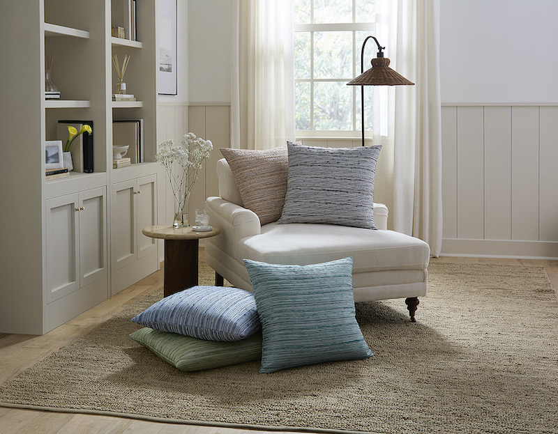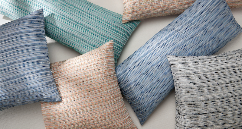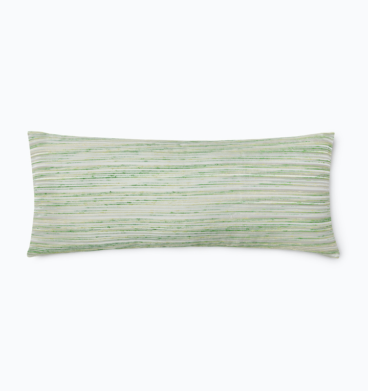 Sferra's Tindari pillows showcase the refined craftsmanship of Italian Jacquard weaving, translating painterly brushwork into five striking colorways. The dimensional striped composition establishes visual cadence and tactile complexity, infusing bedscapes with chromatic sophistication and artistic presence. Crafted in Italy.