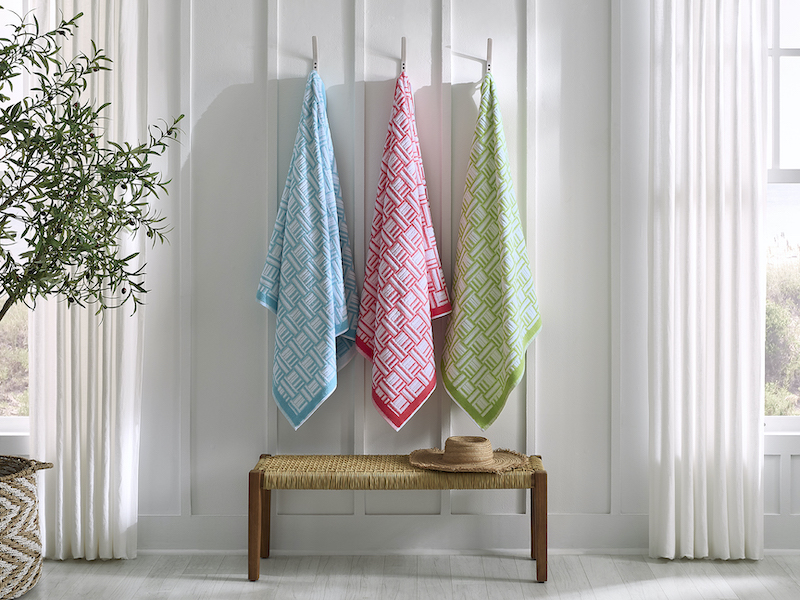 Discover the Tirreno collection, where sophisticated design meets practical luxury. These Turkish-crafted beach towels showcase a striking jacquard basketweave pattern rendered in vibrant Clearwater, Coral, and Kiwi colorways. The geometric texture and rich saturation deliver contemporary style while pure cotton construction ensures exceptional absorbency and quick-drying performance. Perfect for discerning travelers who refuse to compromise on quality or aesthetics.