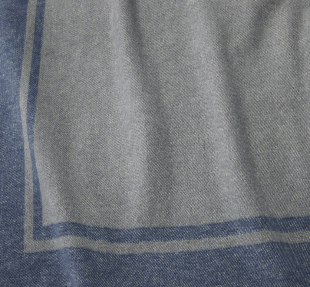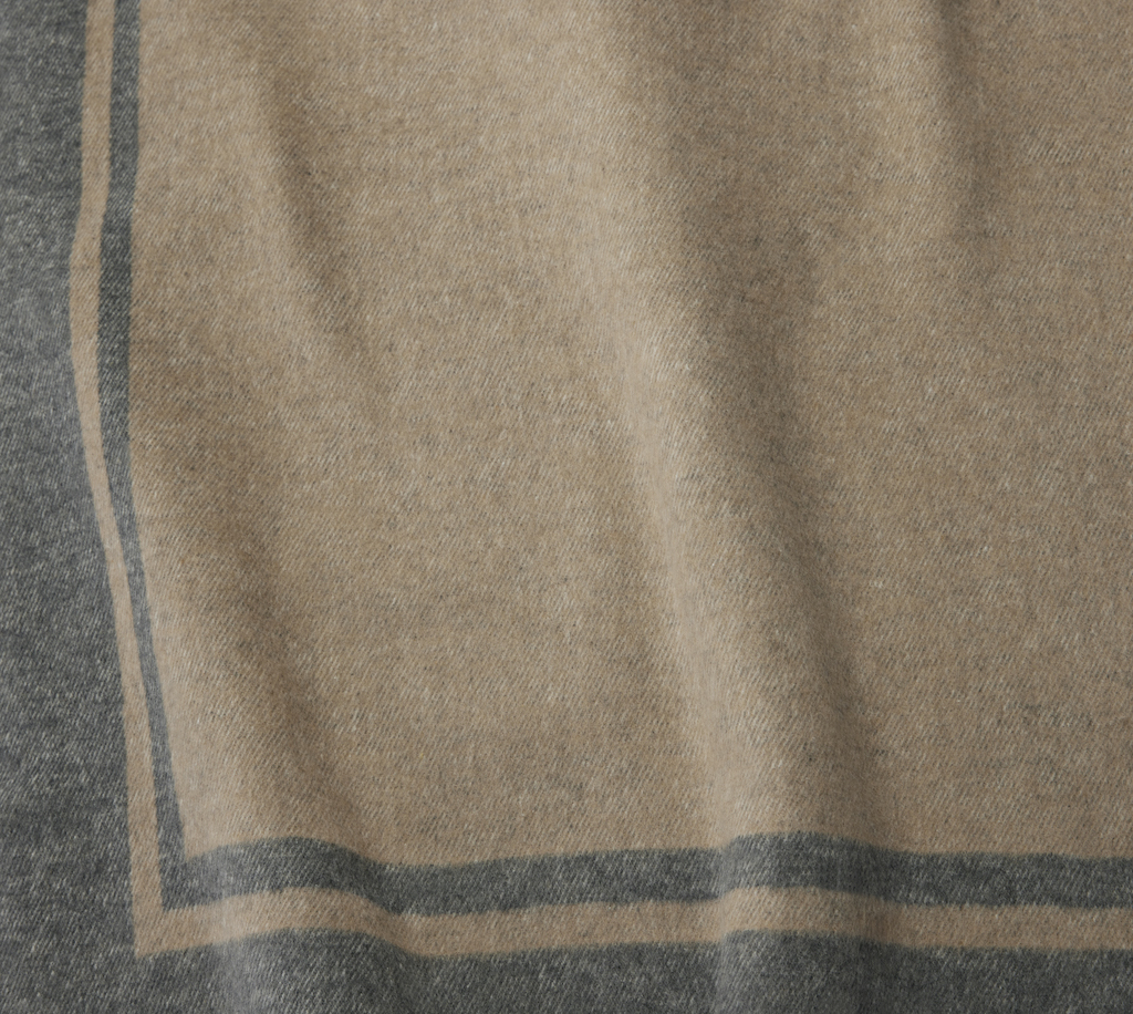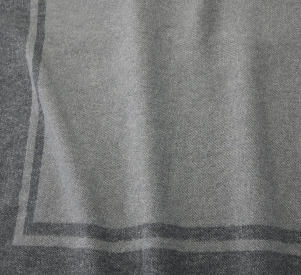 Yarn-dyed Throw. Eyelash fringe hem. 95% Cotton / 5% Cashmere/ 5% Wool/ 10% Nylon / 5% Polyester / 5% Mohair.