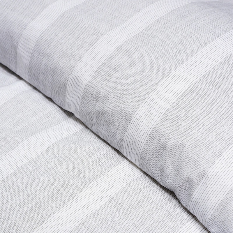 Stamattina's Theo is a textural stripe pattern that works in many homes. Being neutral it can used for many bedroom styles. It is also a great option for a more masculine look. Colors on white background: Grey and Natural. Printed and finished in Italy. Constructed in the USA.